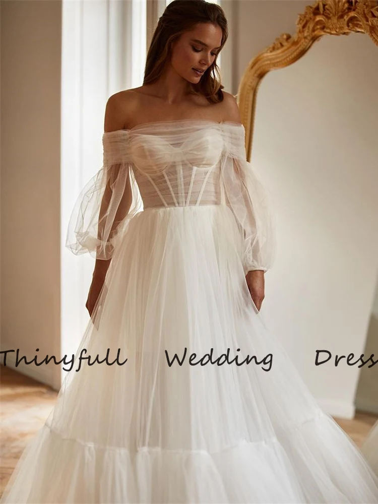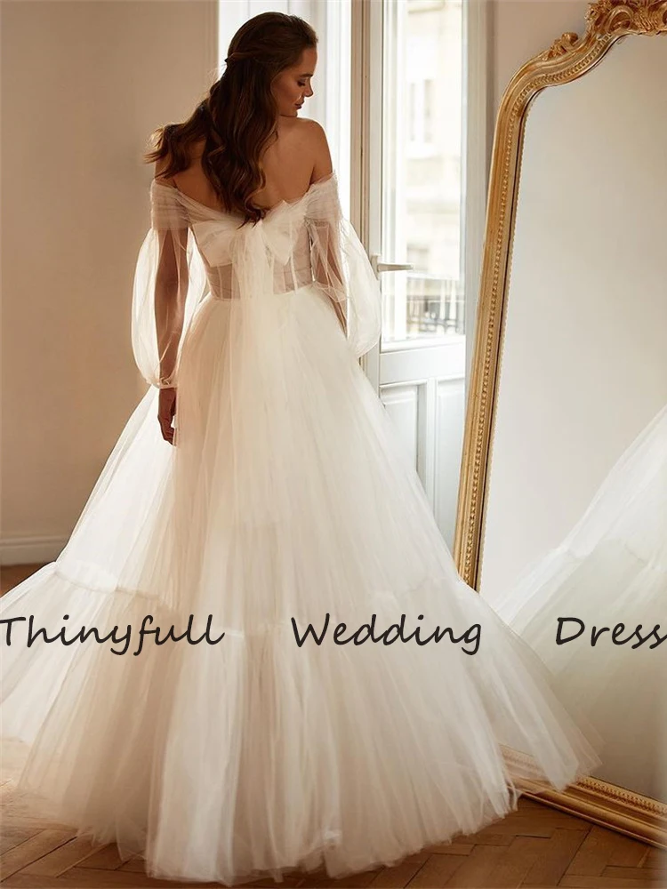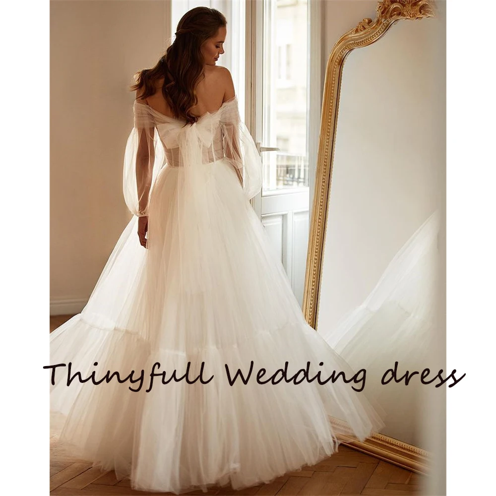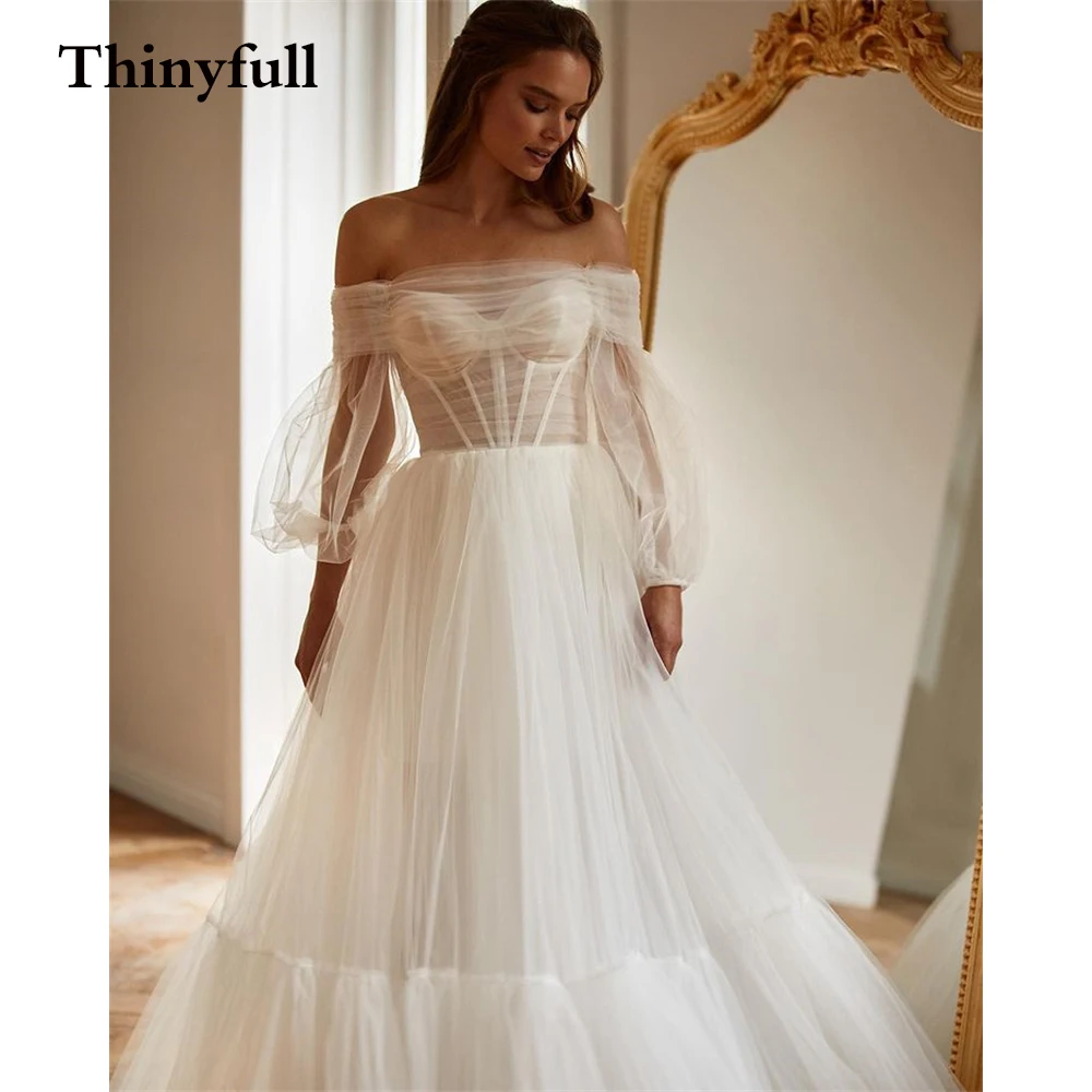 Thinyfull, простые пляжные свадебные платья трапециевидной формы без бретелек с длинными рукавами и бисером, пляжные свадебные платья принцессы, свадебное платье