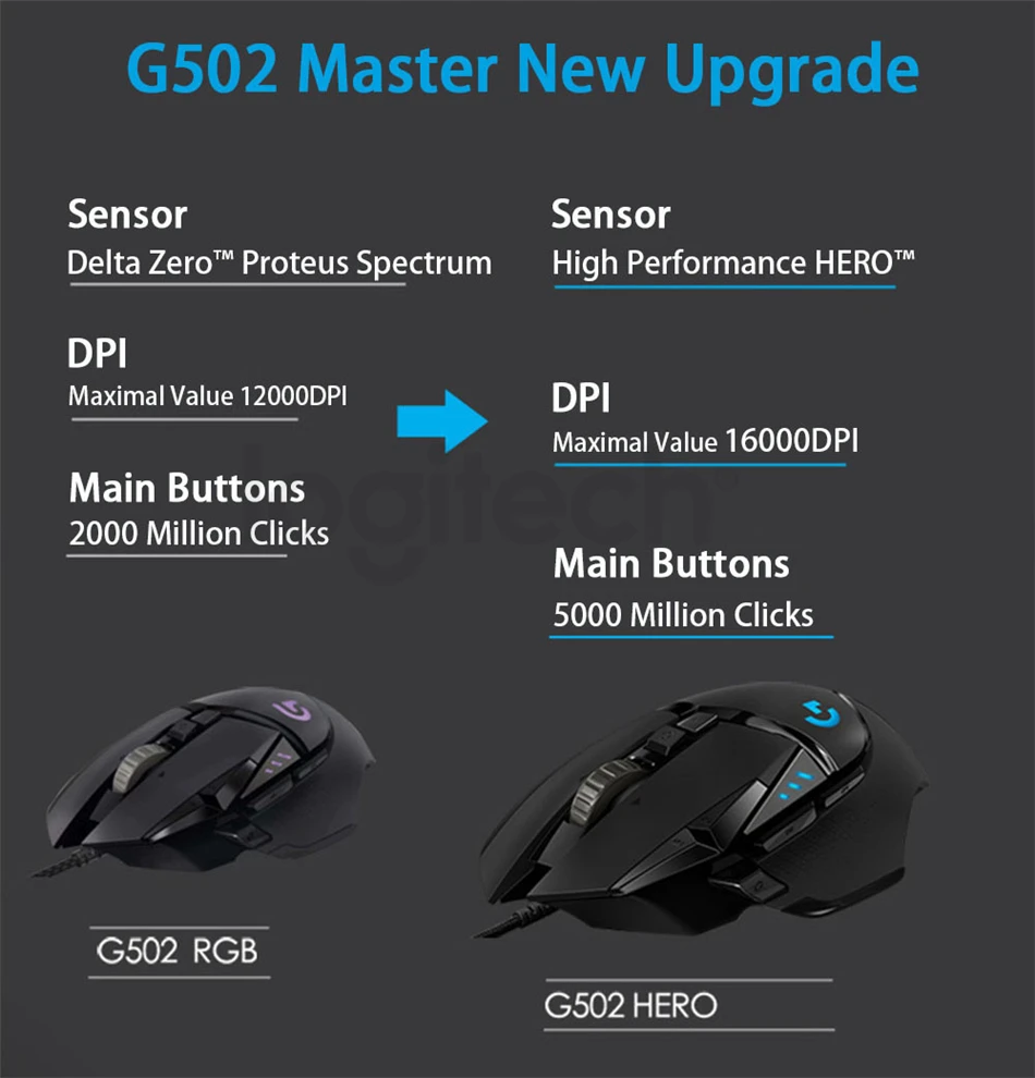 Logitech G502 Hero Engine 16000DPI RGB Hero 16K датчик Профессиональный Мастер Игровой Компьютер программирующая мышь 11 кнопок на заказ