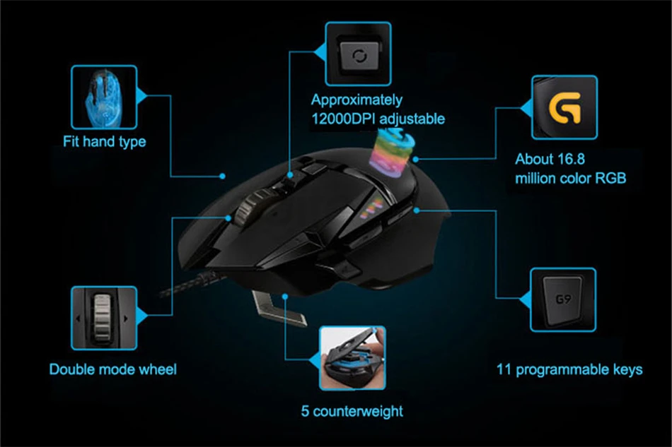 Мышь Logitech G502 Hero Engine 16000DPI RGB Hero 16K Sensor, профессиональная игровая компьютерная программируемая мышь 11 кнопок под заказ