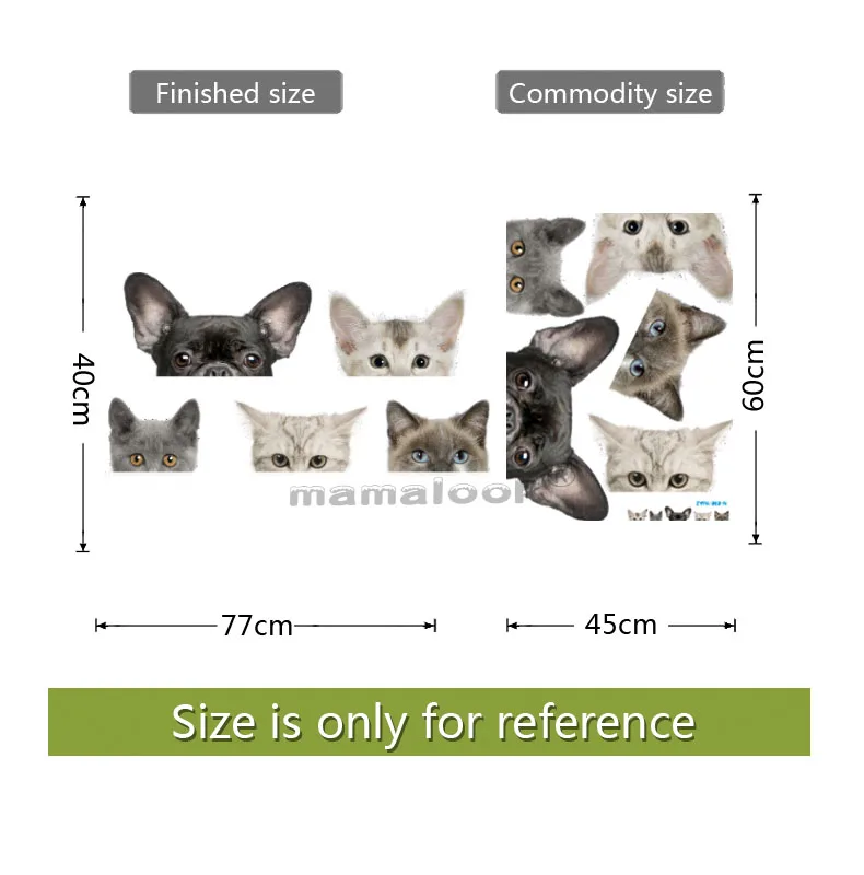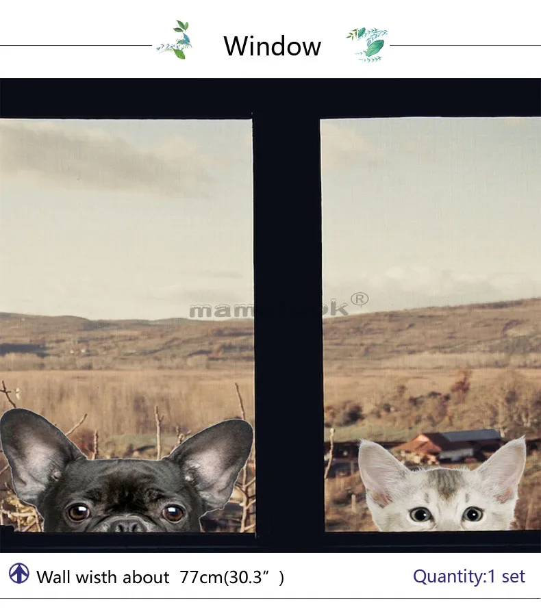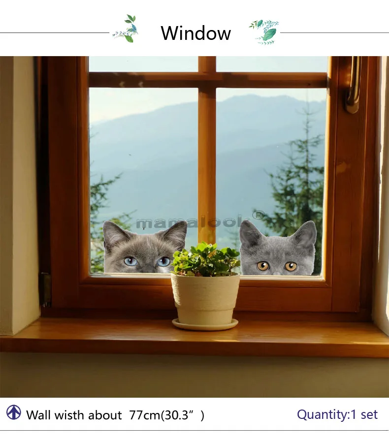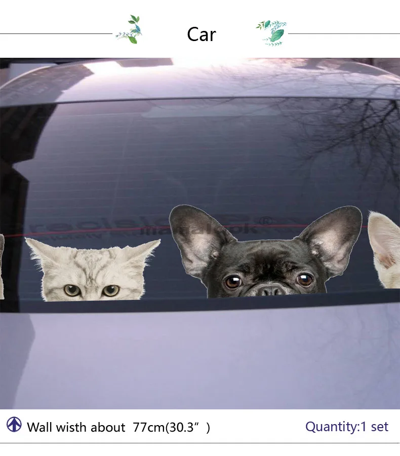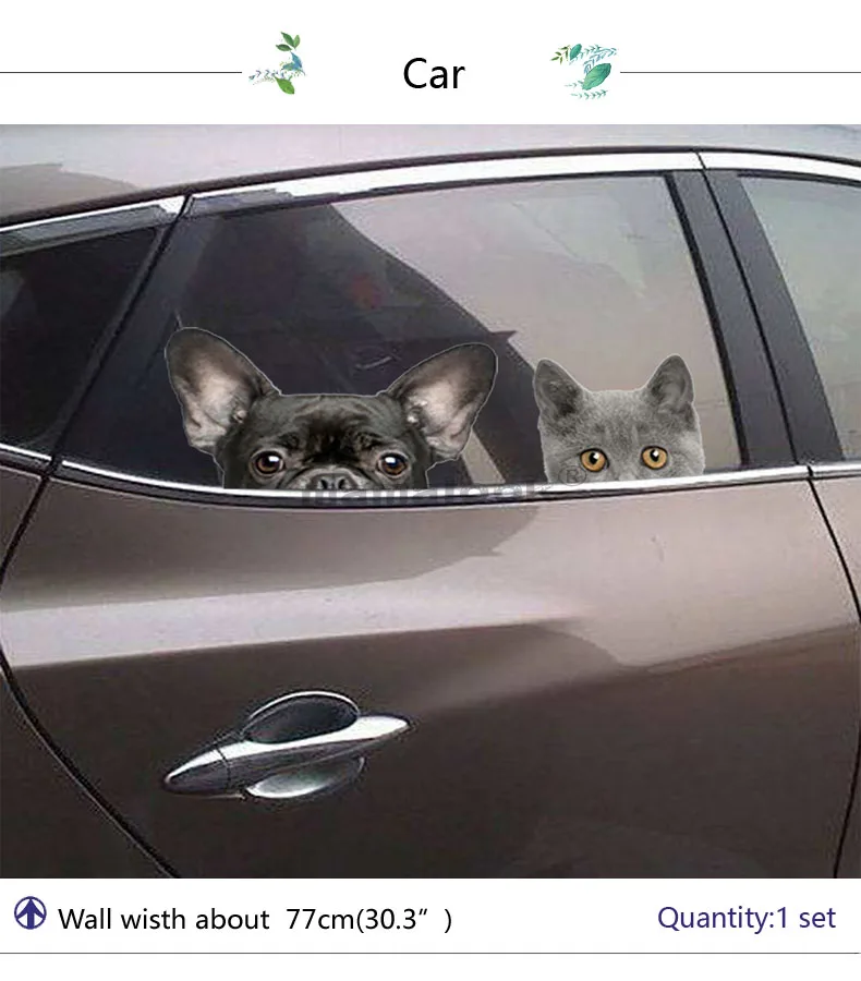 Забавная 3D наклейка с котом, собакой на половину лица, подглядывающая автомобиль, настенный фон, художественные наклейки, украшения, милые животные, настенные наклейки для домашнего декора