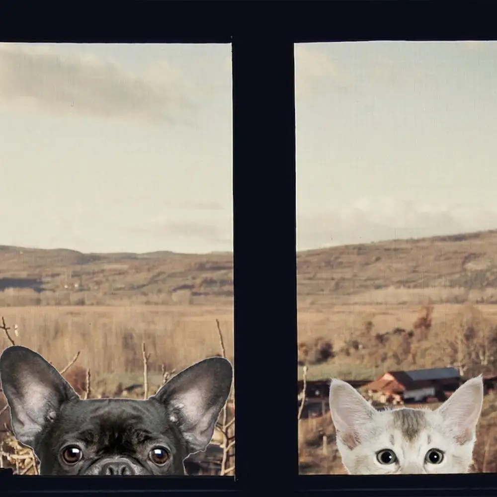 Забавные 3D наклейки с котом и собакой на пол лица, подглядывающие ...