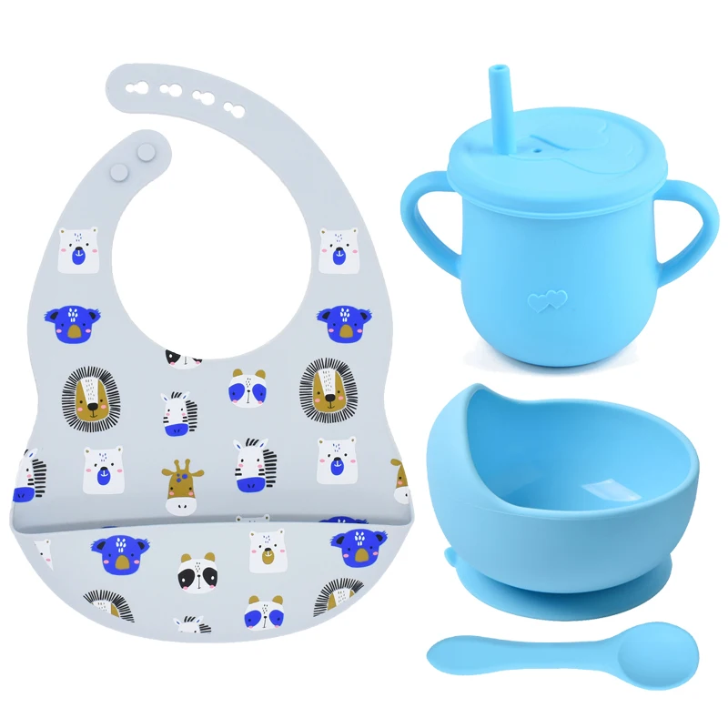 4 шт.компл. детская силиконовая посуда, водонепроницаемый нагрудник...