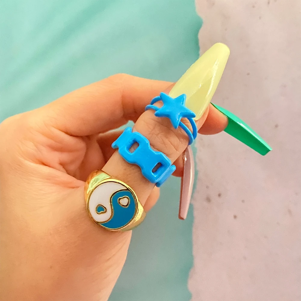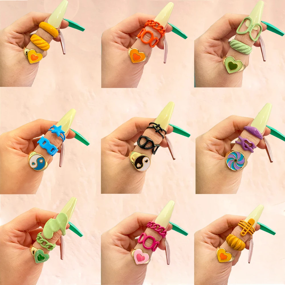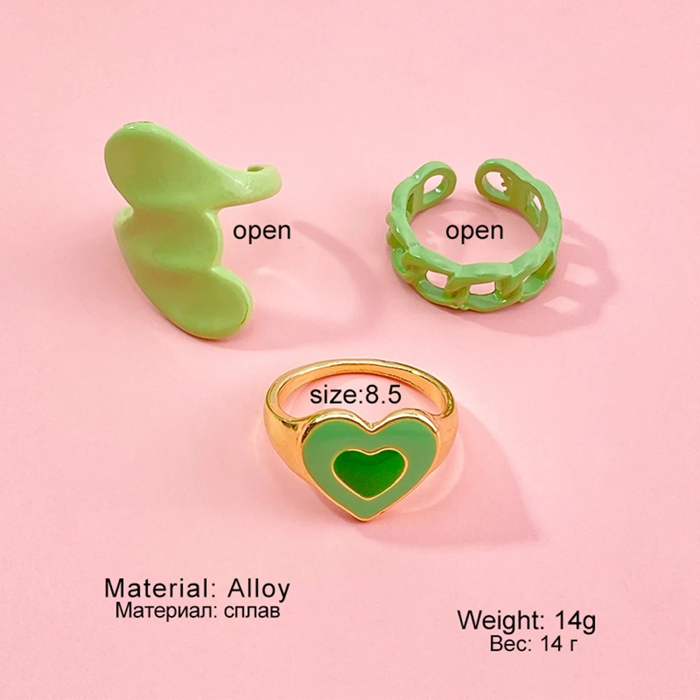 Женский комплект колец в форме сердца, Винтажное кольцо из смолы розового и зеленого цветов, ювелирные украшения y2k