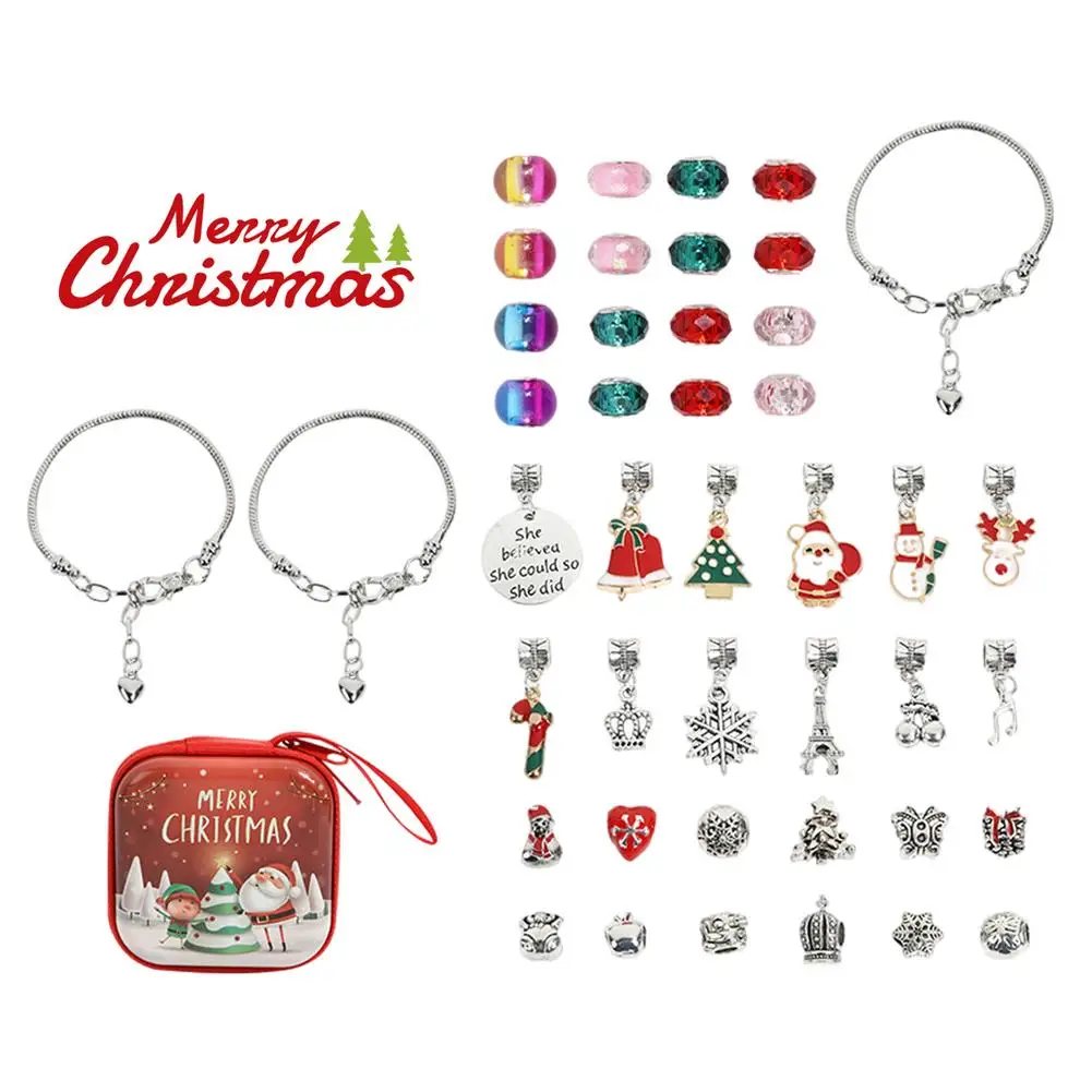 Календарь с браслетом для девочек и женщин, украшение сделай сам с изображением снеговика, Рождества, календарь, 24 дня