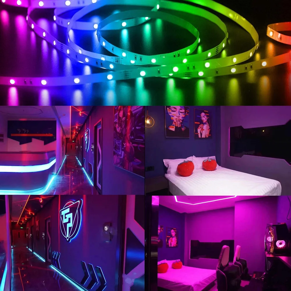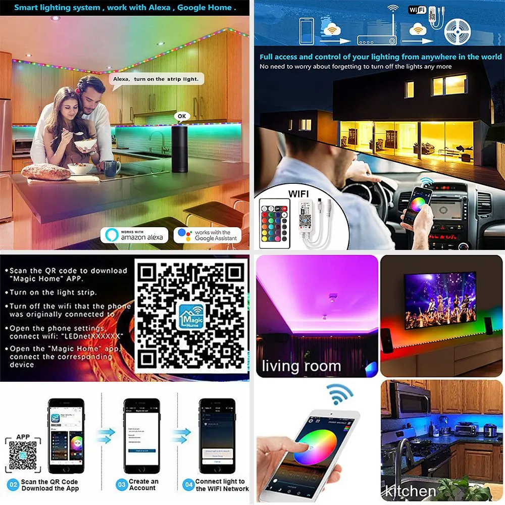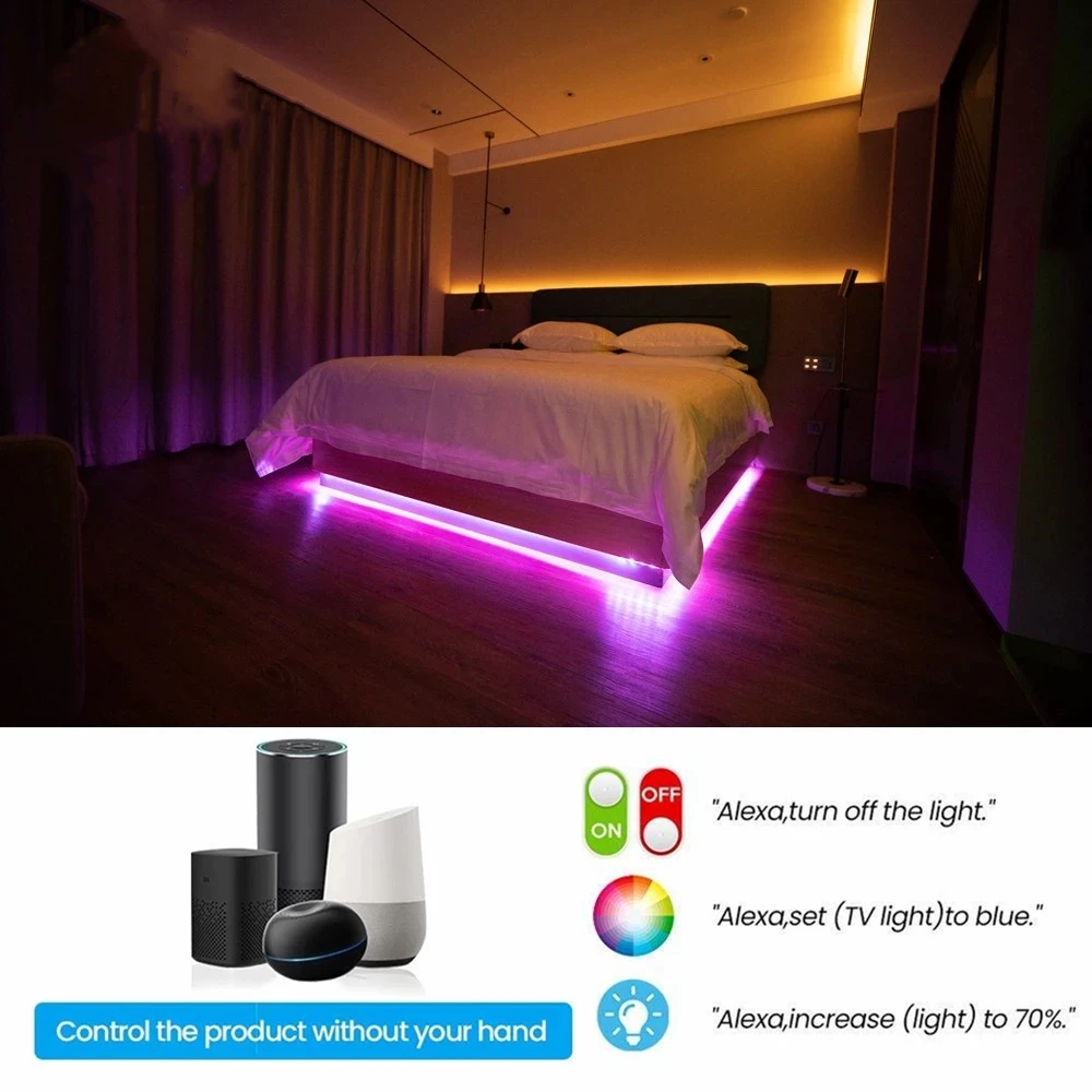 Светодиодная лента RGB 5050, гибкая лента с Управлением по Wi-Fi и Bluetooth для спальни
