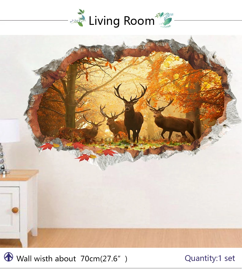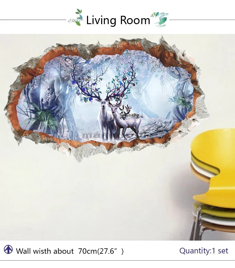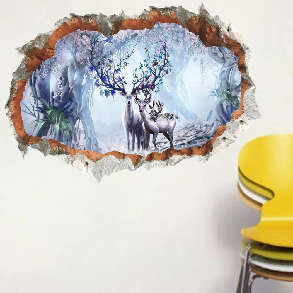 50*70 см 3D разбитая стена лося лес Гостиная ТВ фон настенная декор...