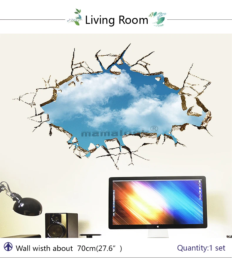 3d наклейка Ceative Broken Wall Blue Sky стикер s для спальни, гост...