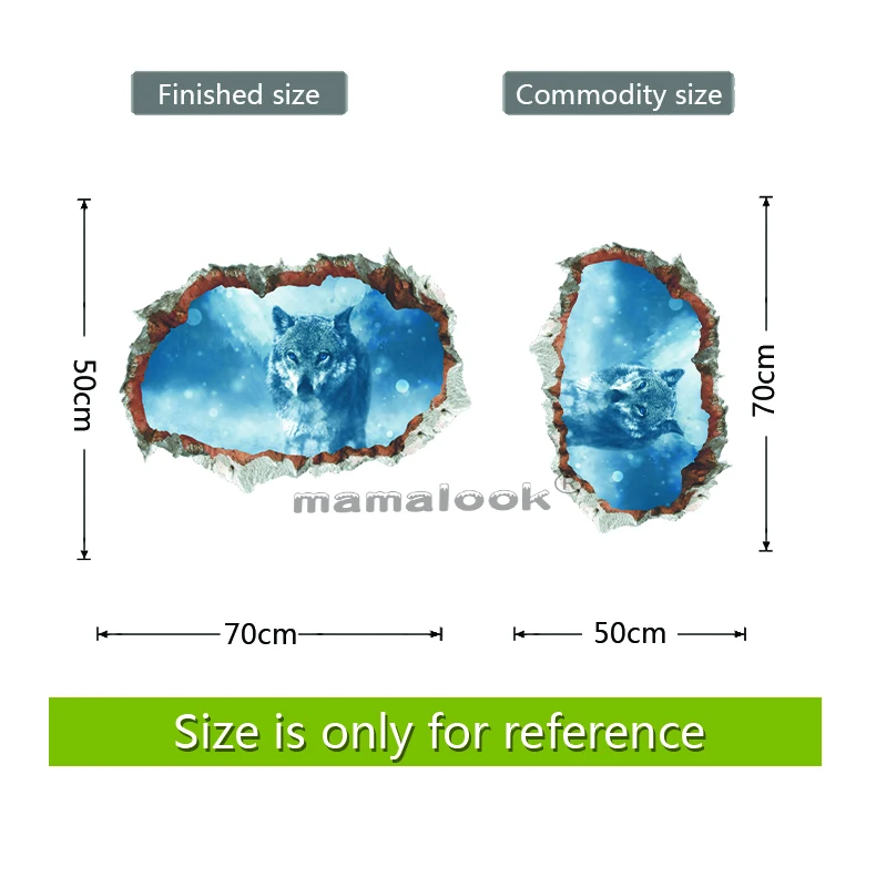Сломанная настенная 3D наклейка с изображением снега, волка, отверс...