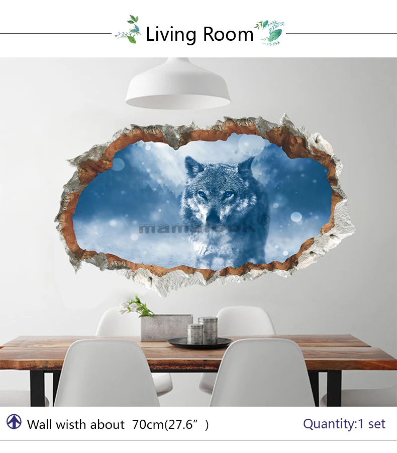 Арктический Снег Волк наклейки на стену 3D яркие сломанной отверсти...
