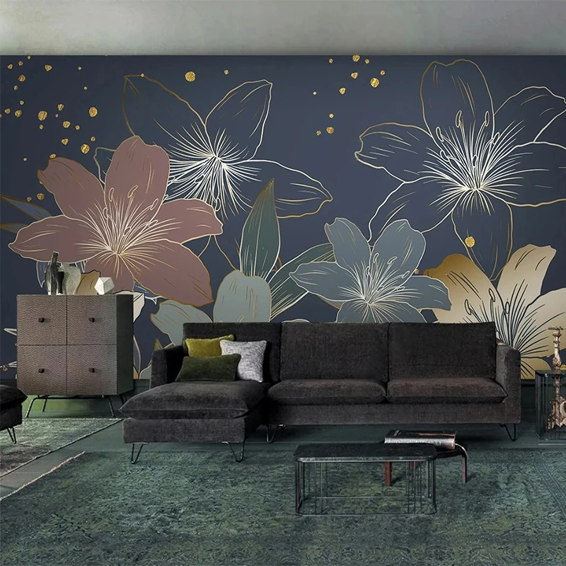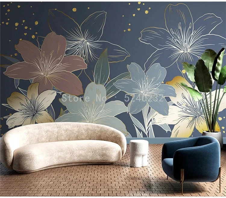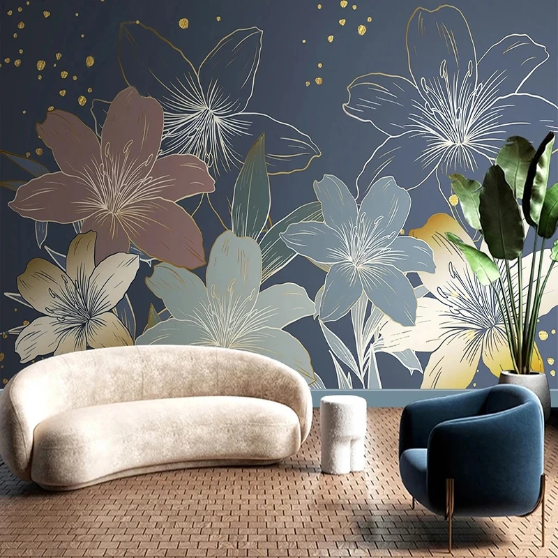Пользовательские фото обои современный 3D завод цветок Лилия Цветок светильник Роскошная гостиная ТВ фон настенная Фреска Papel де Parede 3 D