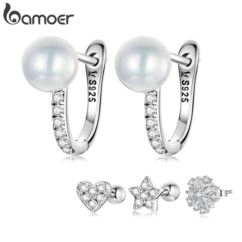 Роскошные серьги-гвоздики bamoer из стерлингового серебра 925 пробы с жемчужинами и пряжкой для женщин, свадебные ювелирные изделия, подарок