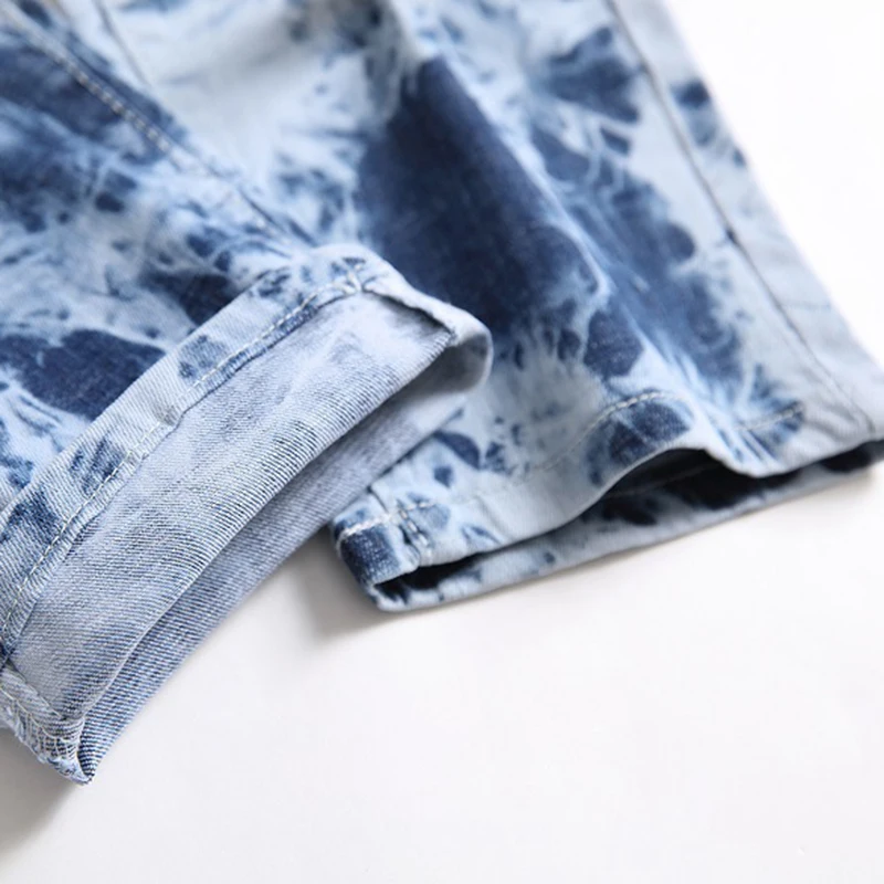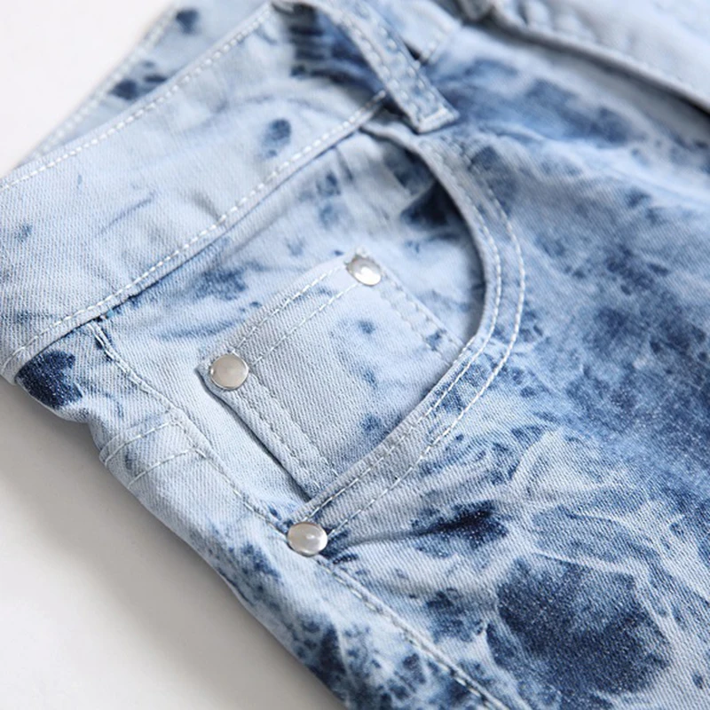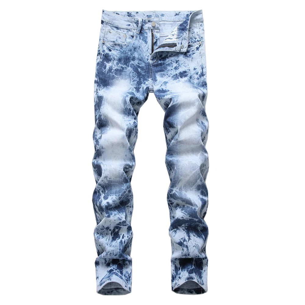 Мужские Выбеленные выбеленные джинсы, уличная одежда, тонкие прямые брюки, синий светильник