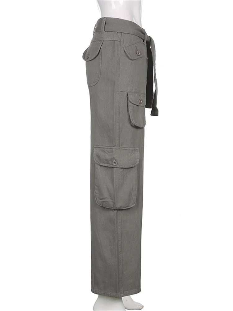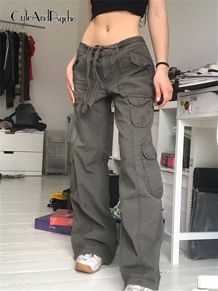 Джинсы-карго женские свободного покроя, уличная одежда из денима в ретро стиле, модные повседневные винтажные джоггеры с карманами, спортивные штаны cuteandпсихоз
