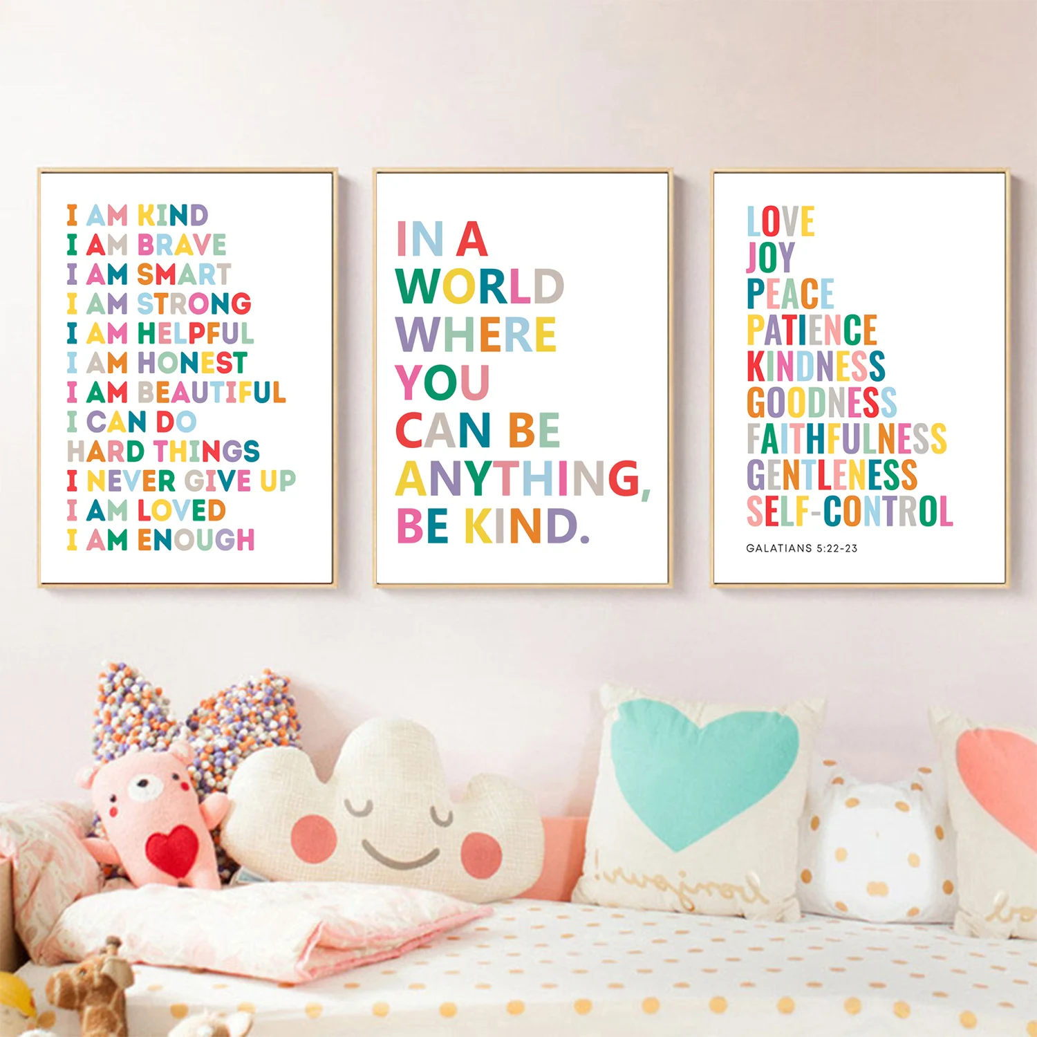 Детские аффирмации поощряющие цитаты Печать Красочные стены искусства холст Картина Декор детской спальни знак постер декор для игровой комнаты