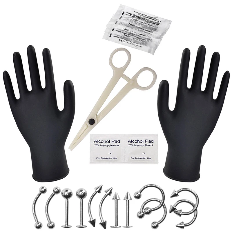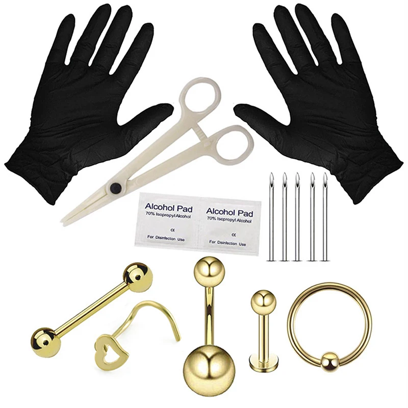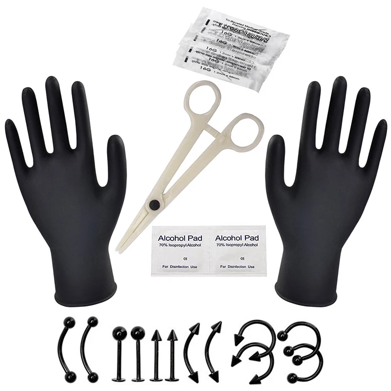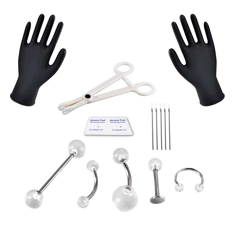 Набор для пирсинга тела со штативом, инструмент для прокола пупка, носовой перегородки, ушей, трагус для сосков, бровей, губ, зажим для пирсинга