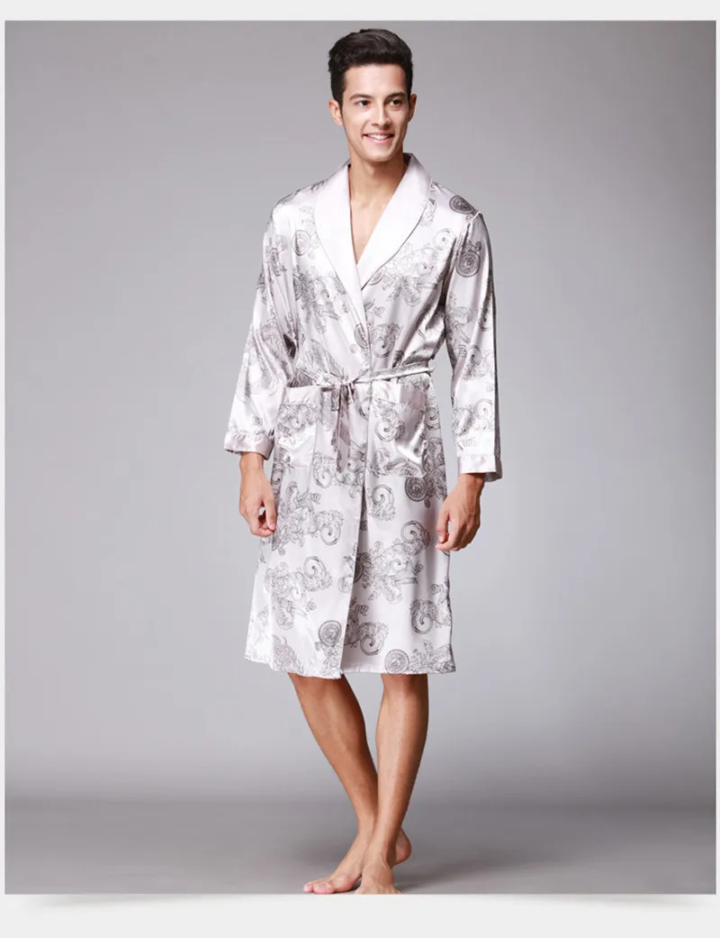 Мужская Шелковая пижама, черная атласная пижама до колен с длинными рукавами и 3D-принтом, для лета и осени, 2021