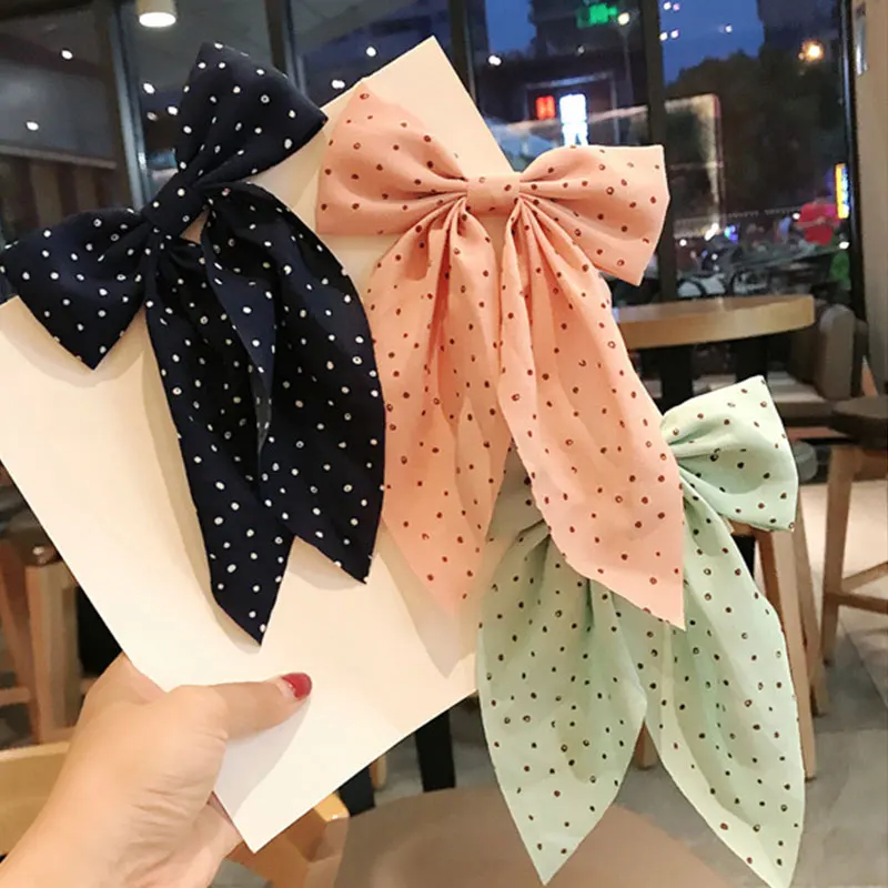 Заколка для волос с большим бантом для женщин и девочек, аксессуары для волос, бант с узлом, шифоновая заколка в горошек