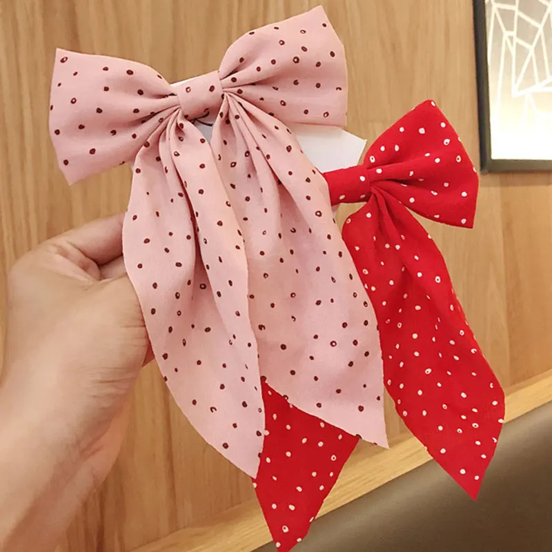 Прямая поставка, заколка в горошек с принтом, Длинная лента, зажим ...