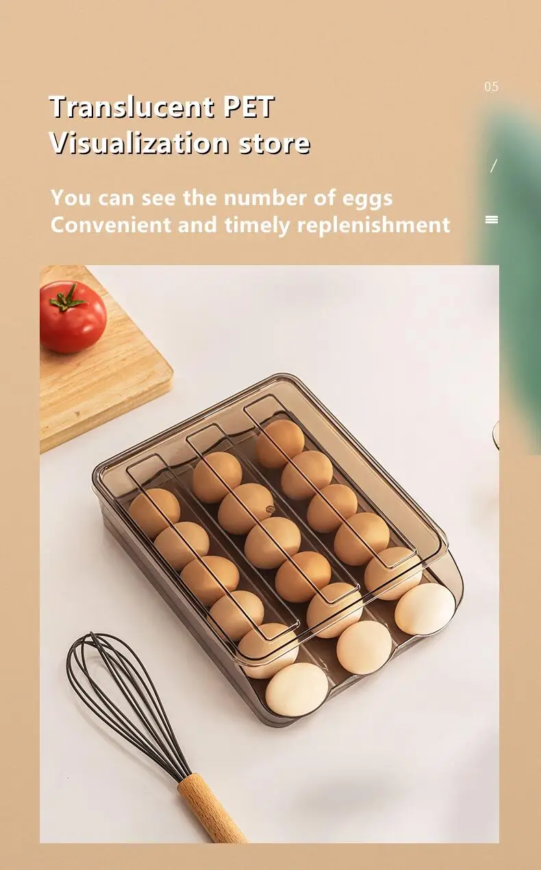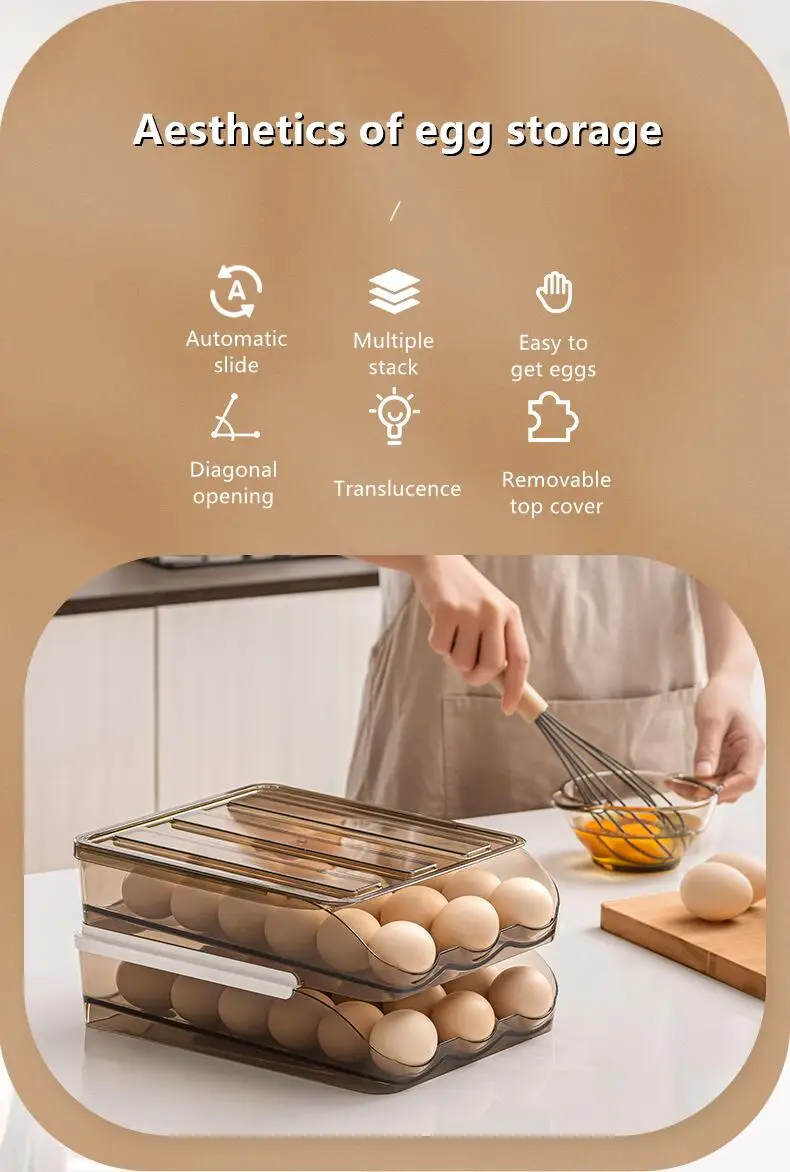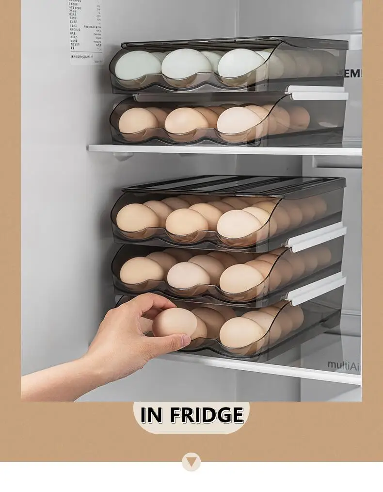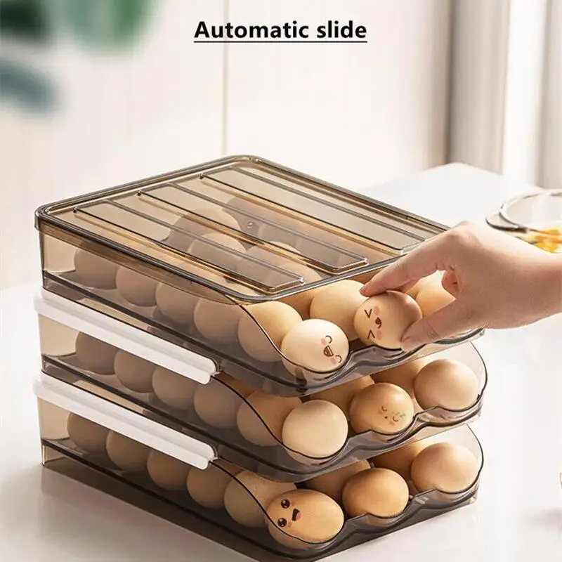 Автоматическая скользящая коробка для хранения яиц, пластиковый держатель для яиц, корзина, контейнер, Диспенсер, органайзер, шкаф для холодильника, кухни