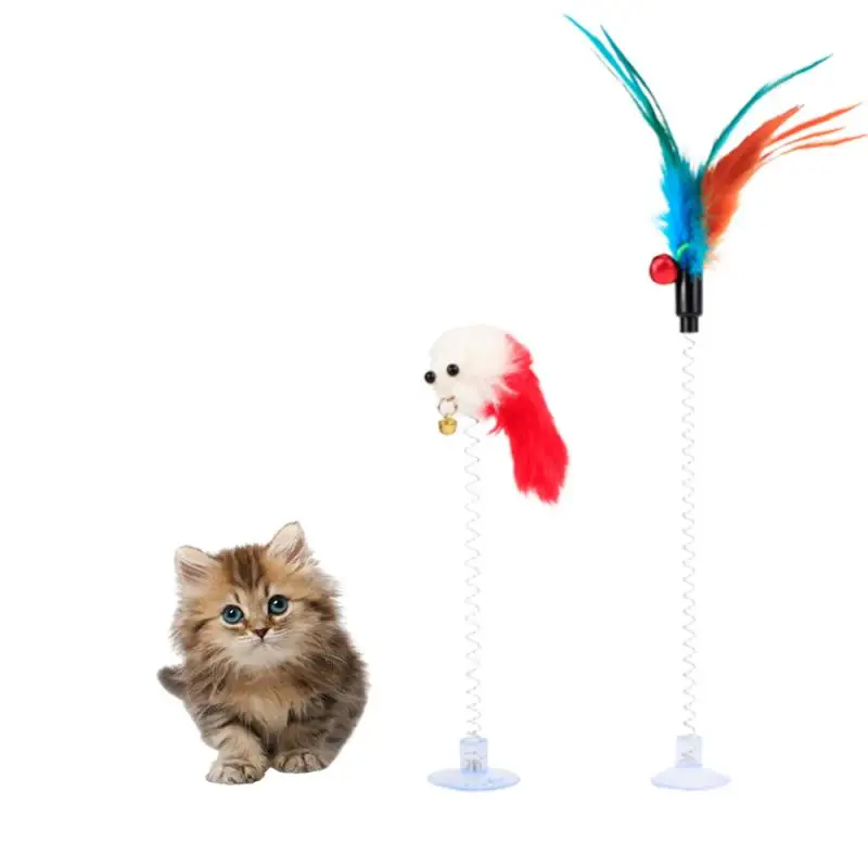 1 шт. пружинное перо мыши с присоской, игрушка для домашних животных, забавные игрушки для кошек, случайный цвет, разноцветное перо для кошки, Аксессуары для кошек
