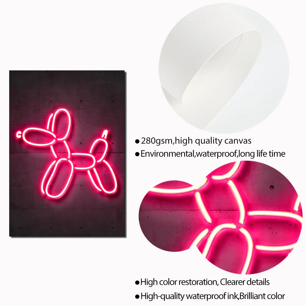 Неоновые граффити в стиле ретро, настенные картины в скандинавском стиле, Картина на холсте, картины с рисунком собаки, домашний декор для бара и комнаты