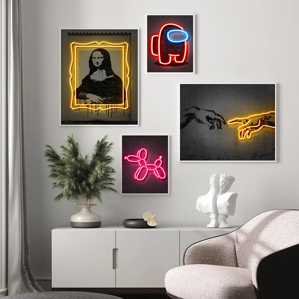 Настенная картина в стиле ретро с неоновыми граффити, постеры на хо...