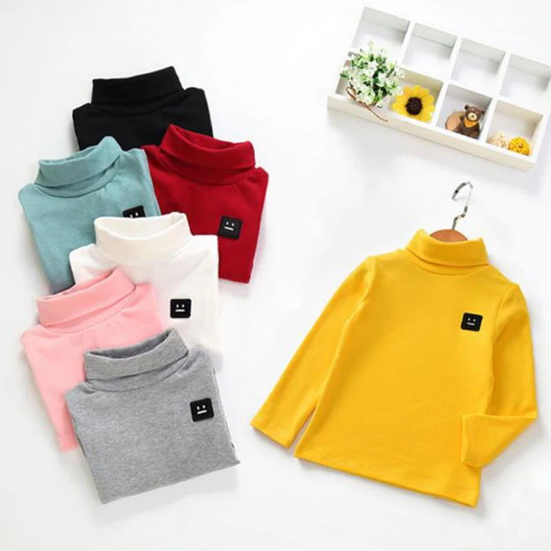 Новые хлопковые осенние базовые рубашки для девочек зимняя водолазка с воротником футболка для 1-6 лет удобная одежда с длинным рукавом для маленьких девочек