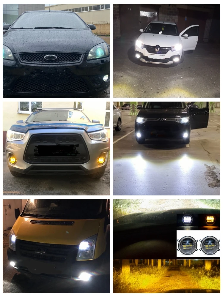 Пара светодиодный ных противотуманных фар в сборе, 30 Вт, 6000 К, белые и желтые диодные фары, противотуманные фары, противотуманные фары для lada Vesta Renault