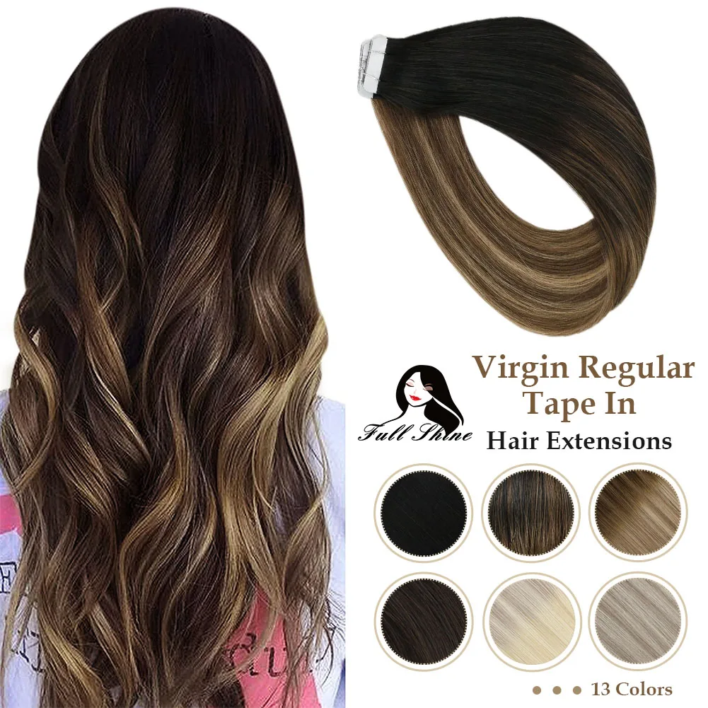 Полностью блестящие прямые человеческие волосы на ленте, натуральные волосы Remy для наращивания, Омбре, блонд, цвет, кожа, уток, 9А класс, клейкая лента