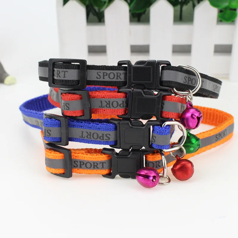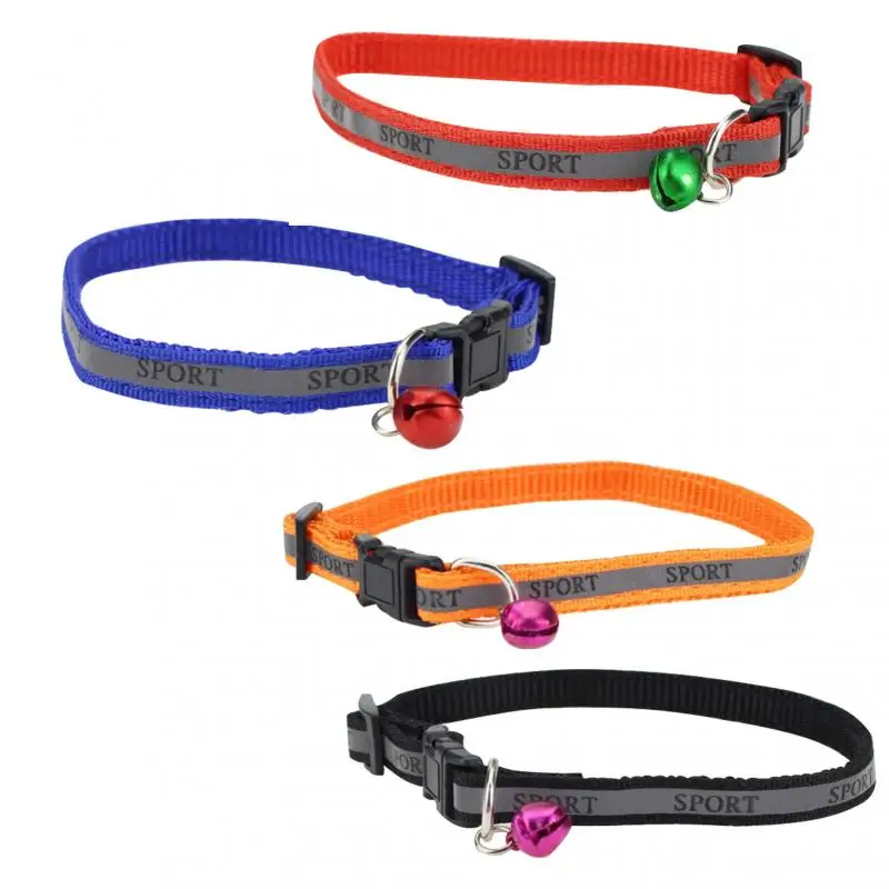 Регулируемый Светоотражающий ошейник для собак, кошек, с колокольчиком, ночное безопасное ожерелье с пряжкой нейлоновые воротники, шейный ремешок для домашних питомцев, щенков, котят