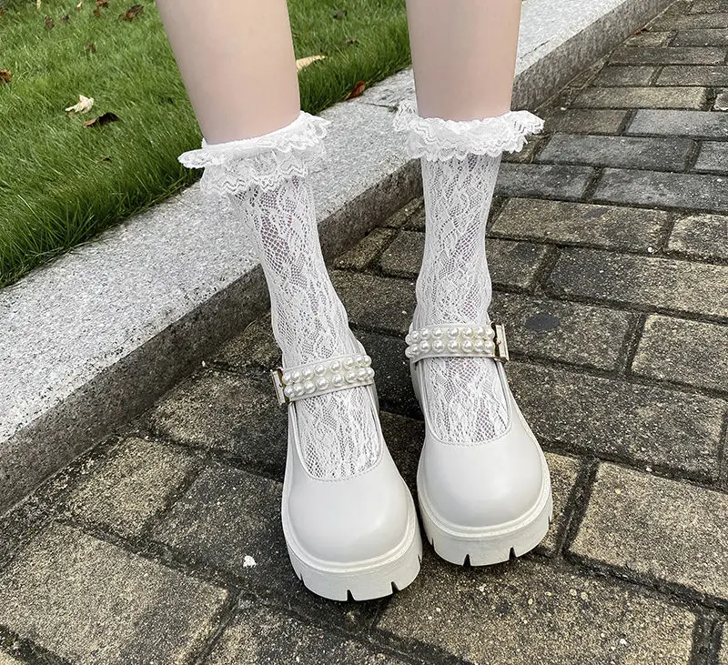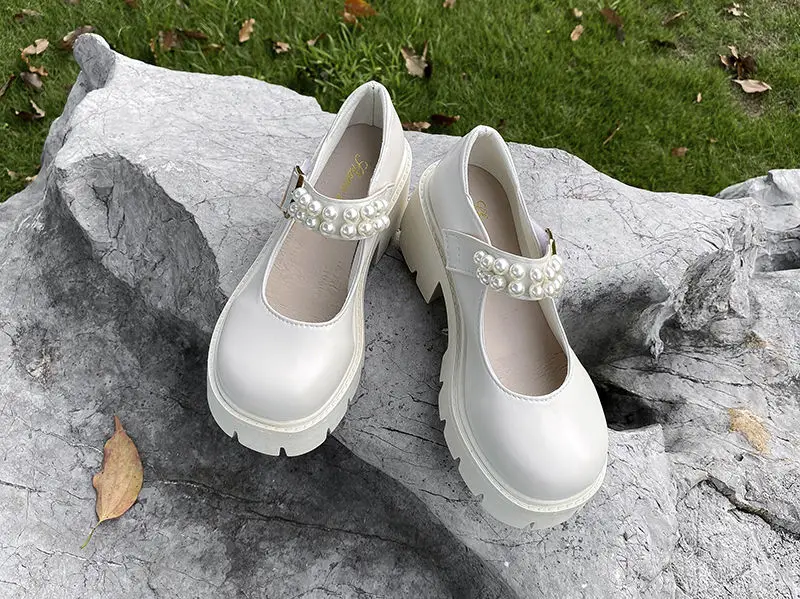 Туфли Mary Jane Lolita для девочек, белые туфли на платформе и кабл...