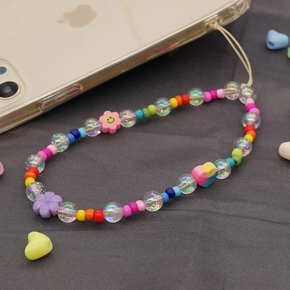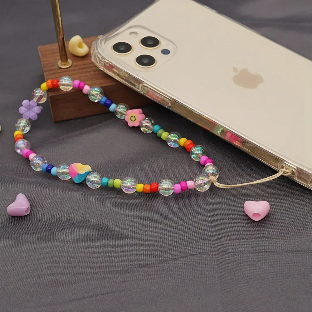 Цепочка для телефона для девочек, ремешок с бисером, ремешок на зап...