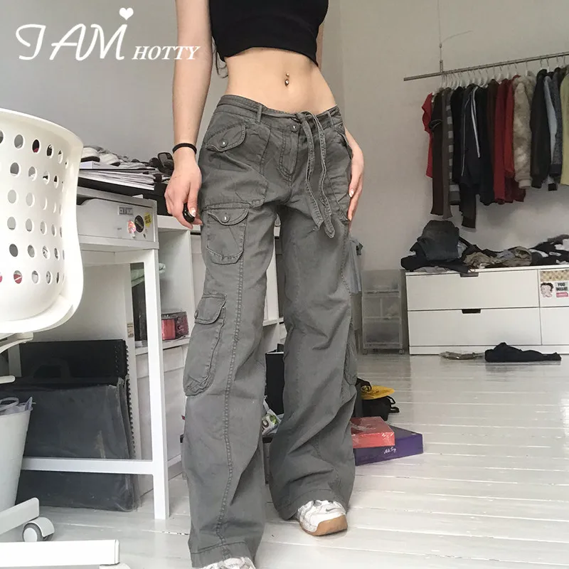 Джинсы-карго женские, винтажные, мешковатые, с несколькими карманами