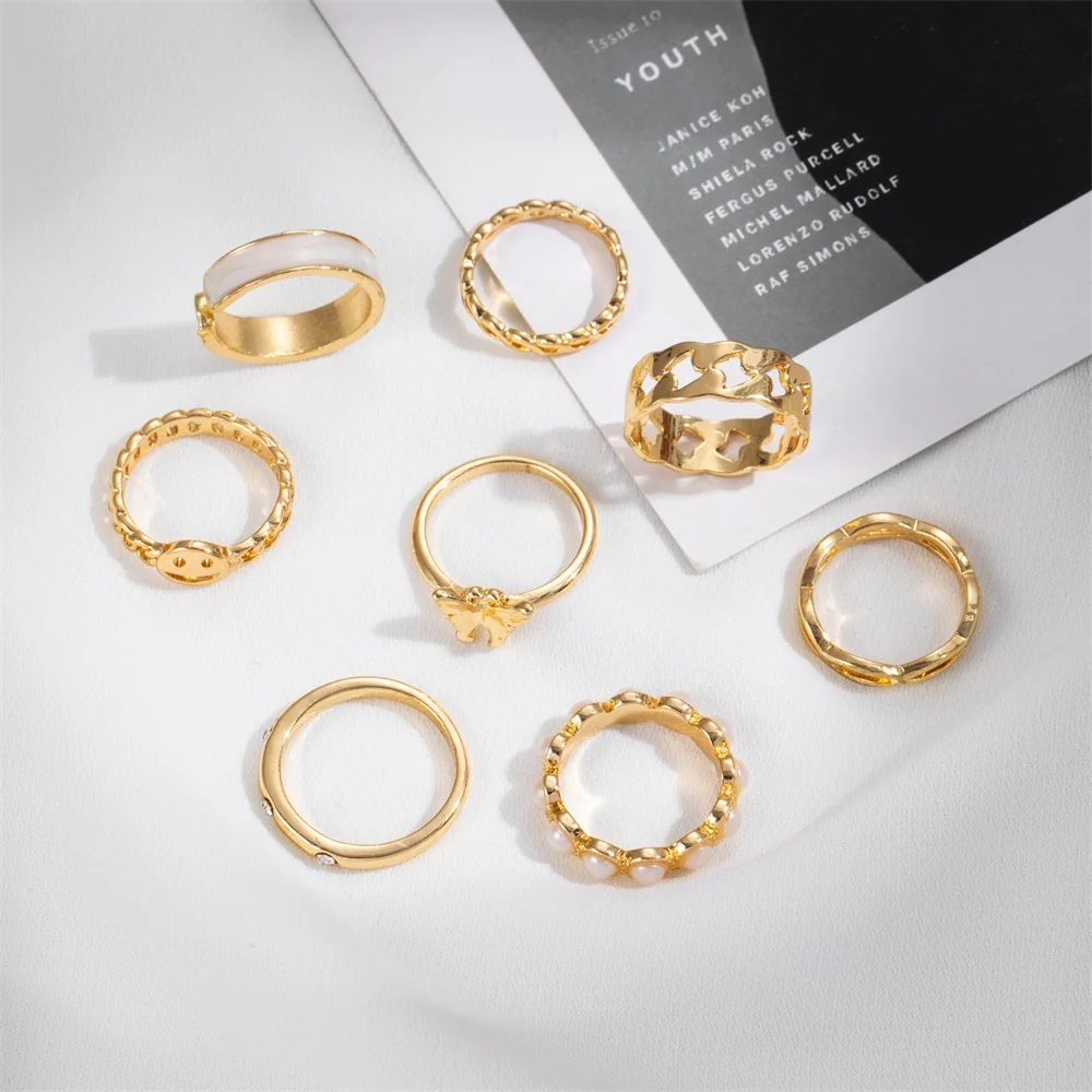 8 шт. набор колец с жемчужинами и полыми бабочками для девочек, Зол...
