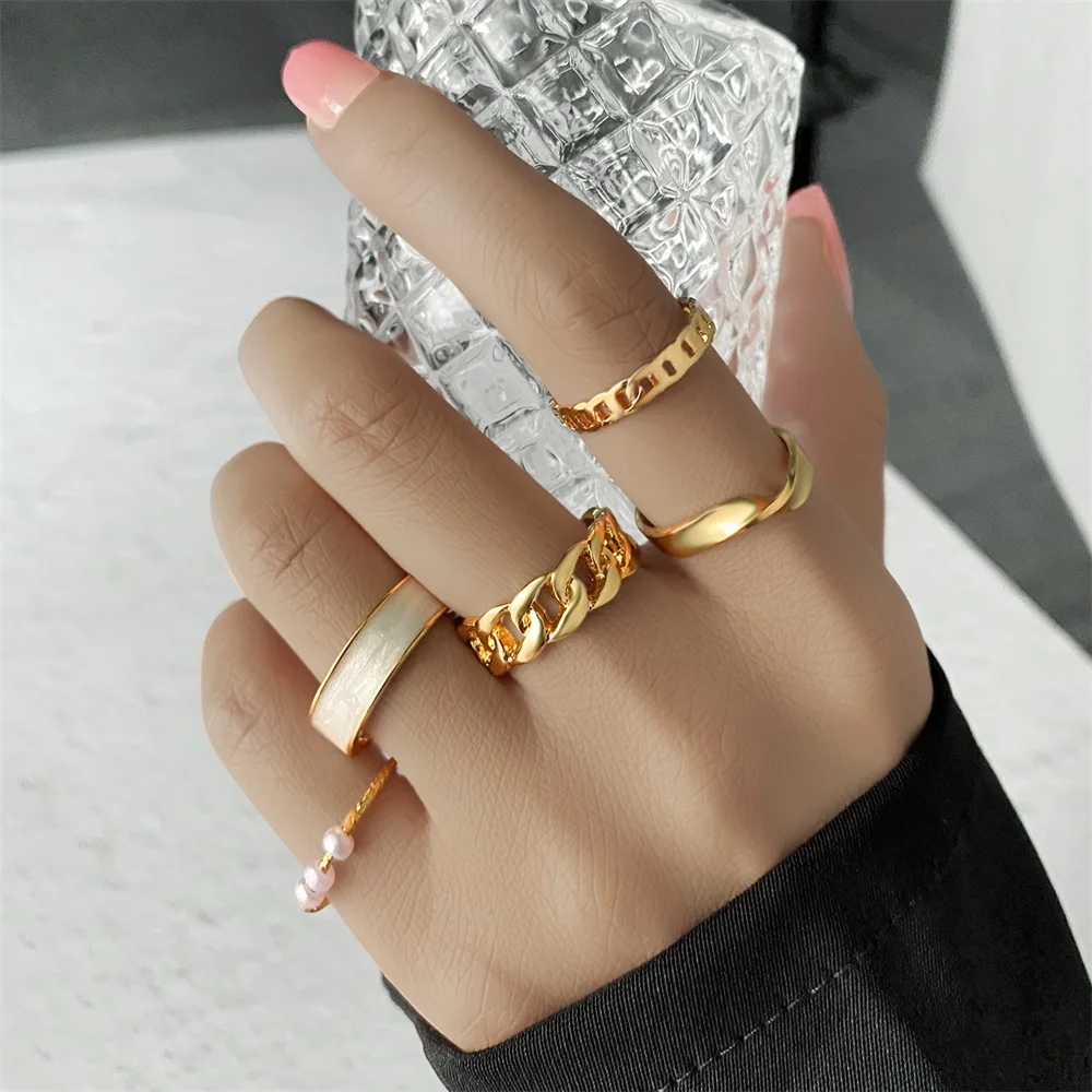 Набор Колец FNIO в стиле хип-хоп, панк, Золотая цепочка, для женщин...