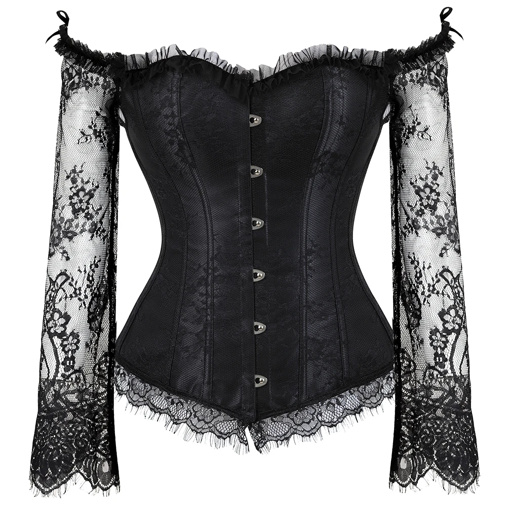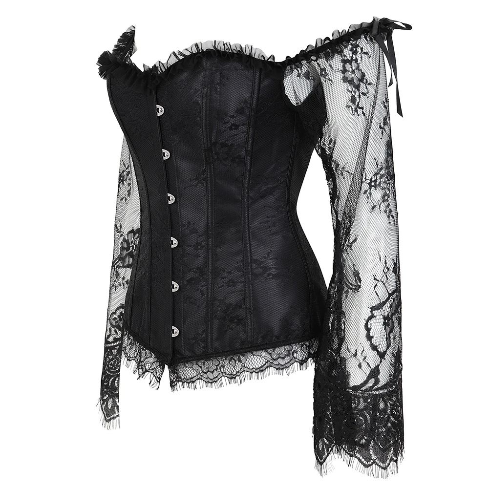 Викторианский корсет, топ, бюстье, женское белье с длинными рукавами, Женский эротический кружевной Цветочный сексуальный костюм, модный Бурлеск