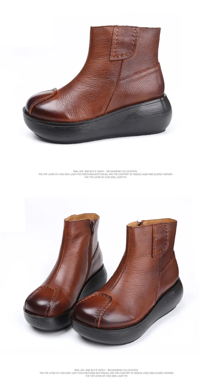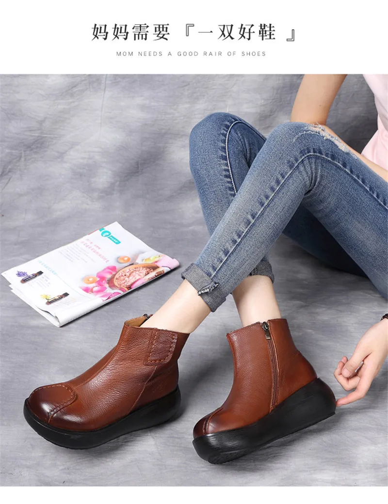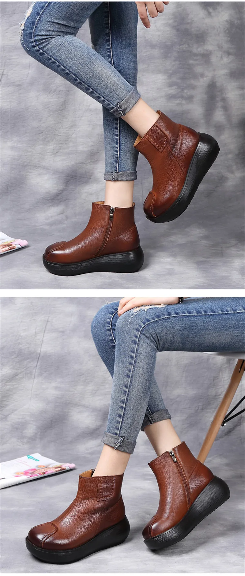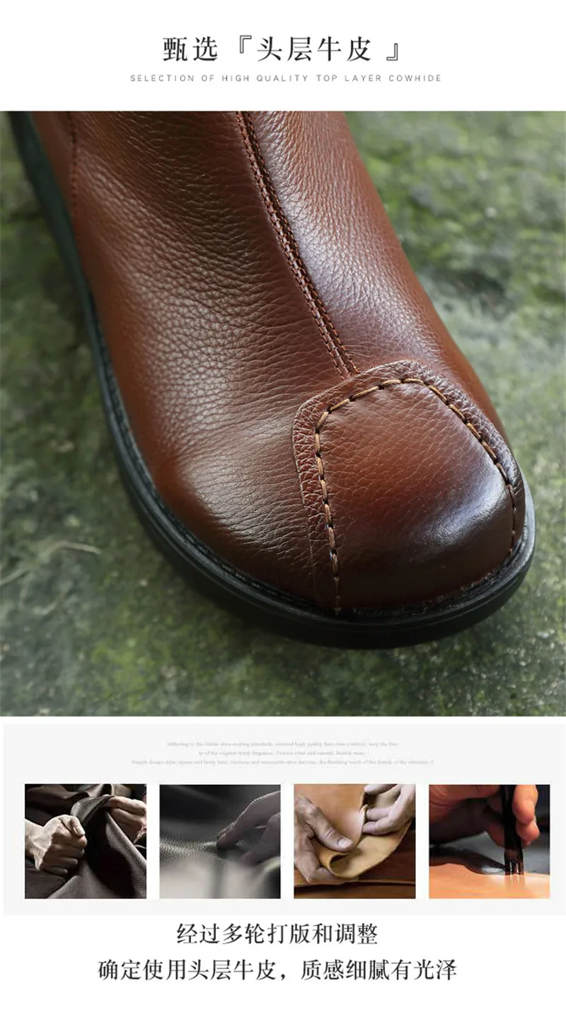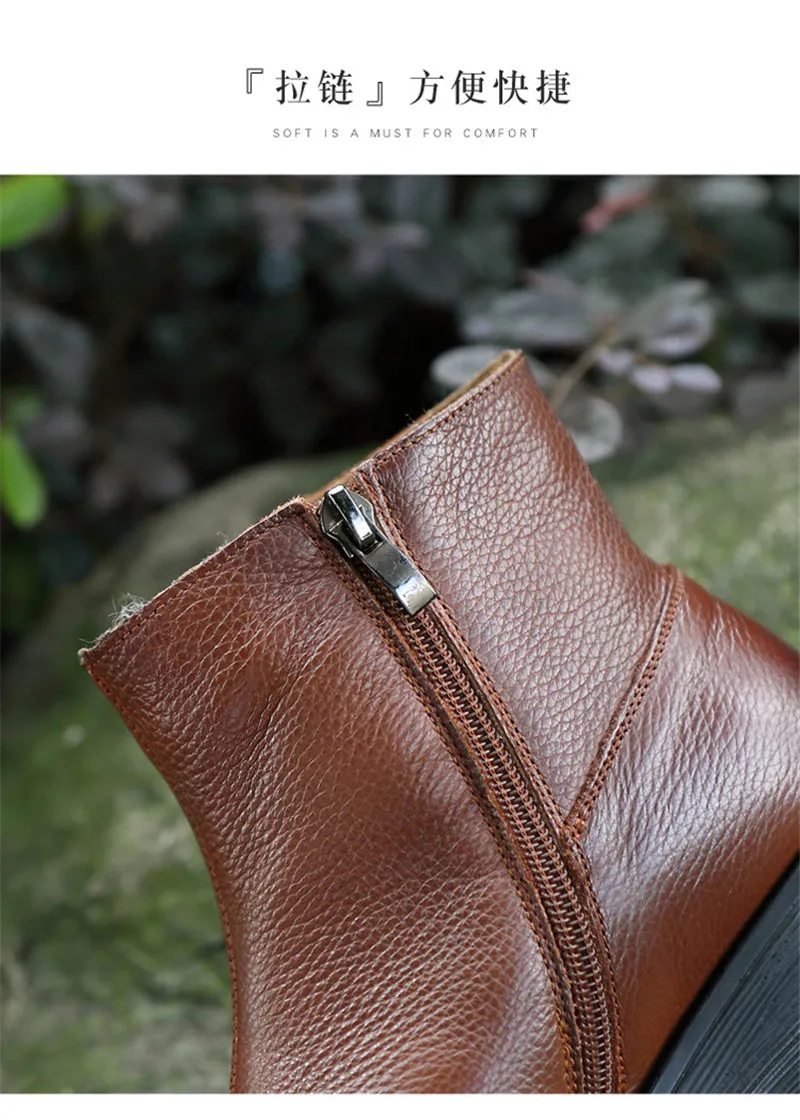 Женские ботинки из натуральной кожи CEYANEAO, Винтажные ботинки на плоской подошве, женская обувь из мягкой воловьей кожи, ботильоны на молнии спереди, женская обувь