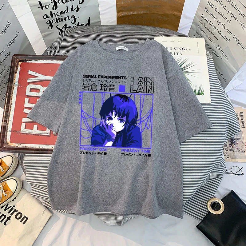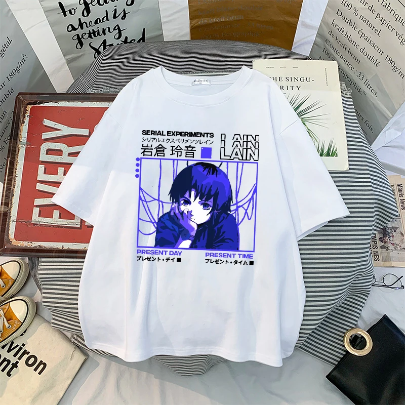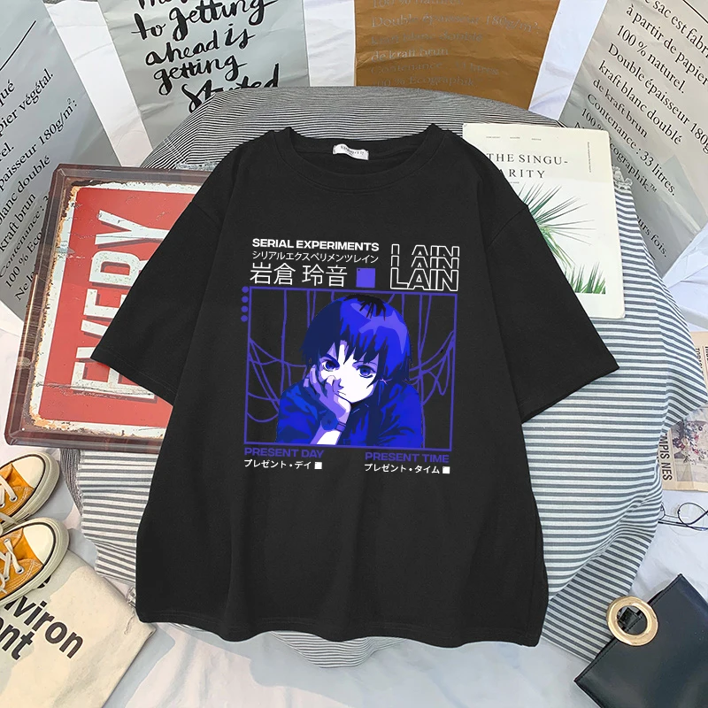 Футболка мужская оверсайз с серийными экспериментами, хлопковая рубашка с блестками, топ с коротким рукавом для игры в научно-фантастику, покупки манги, зимней девушки