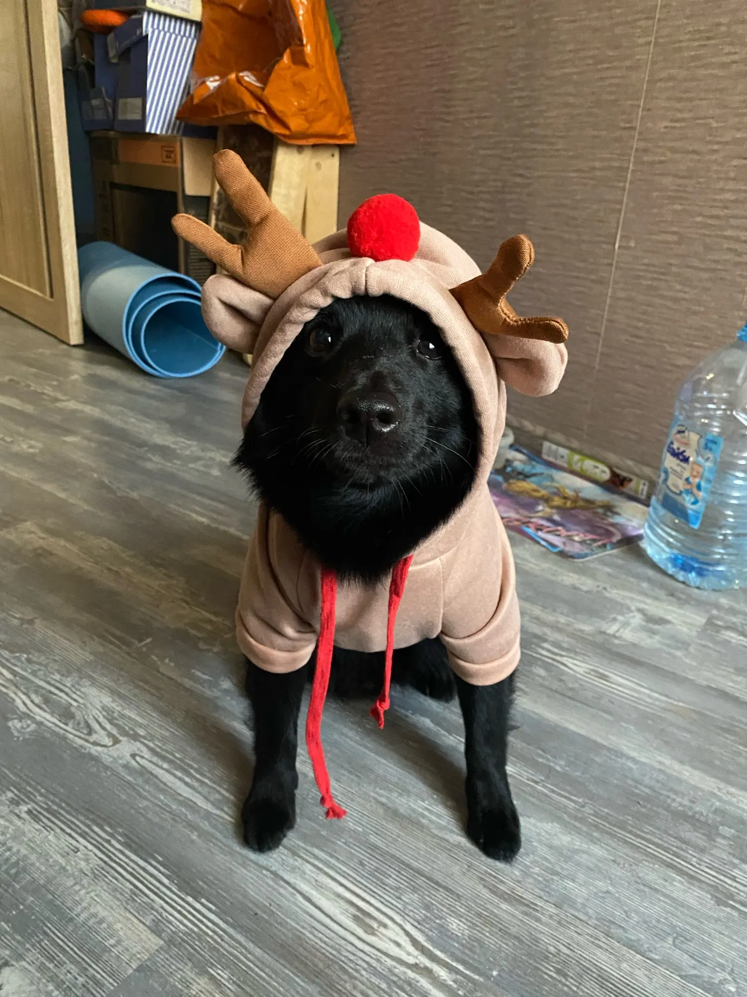 немного ошиблась с размером, на мою собачку в 1,7кг надо было самый маленький размер выбирать. думала взять по размеру спинки, а в груди широковато. будем вшивать, зато капюшон шикарный и с завязочками, и теплый достаточно для осени)
