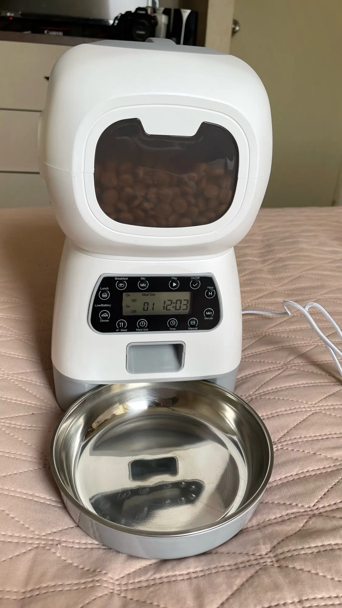 Программируемое время и часть: вы можете кормить своего питомца 4 едой в запланированное время, и каждый из них имеет контроль 1-20 порций, что может помочь питомцу развить хорошую привычку к еде;Инфракрасная индукция: с инфракрасным интеллектуальным датчиком, когда чаша заполняется определенным количеством, машина автоматически остановится, предотвращая перегрев пищи;Диктофон: Этот Фидер позволит вам записывать свой голос в течение 10 секунд, поэтому он позвонит вашему питомцу прийти и насладиться временем еды с вашим голосом, устраняет одиночество питомца, даже если он отсутствует.Мульти Источник питания: вы можете либо использовать адаптер питания поставляется с питателем или батареями (не включая), чтобы доставить питание к вашему автоматическому питателю для домашних животных;Сохранение свежести пищи: часть головки, в которую Вы помещаете еду, имеет хорошую герметичность, чтобы сохранить еду свежей; Кормушка будет поставляться свежей едой на каждом приеме пищи для вашего питомца. Сохраняет их здоровыми и свежими продуктами.Чаша изготовлена из высококачественной нержавеющей стали с высоким качеством пищевых продуктов, также она снимается для легкой очистки.Подходит для всех кошек и собак разных размеров, милый робот также будет хорошим компаньоном. Хороший помощник для вас, чтобы накормить вашего питомца.Технические характеристикиМатериал: АБС + нержавеющая стальВход: 100-240 В переменного токаВыход: 5 V/0,2 AВремя кормления: 4 приема пищи (завтрак, запуск, ужин и 4 приема пищи)Запись голоса: 10 секундЦвет: как на картинкеВес: 3,54 фунтов (1,61 кг)Размер: 18,6 × 32,4 × 35,6 см (7,32 × 12,76 × 14 дюймов)