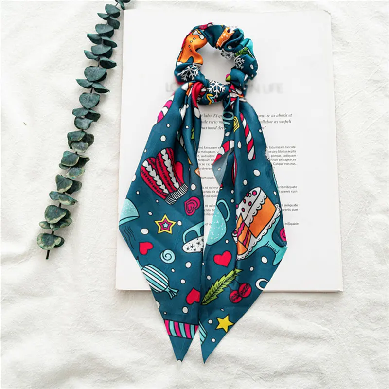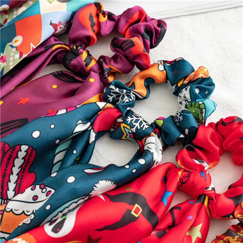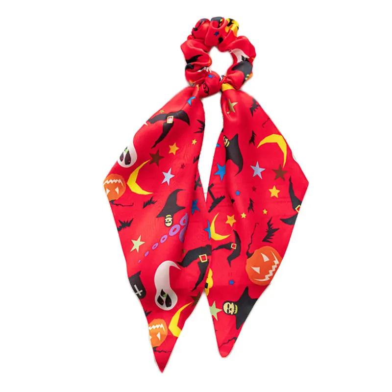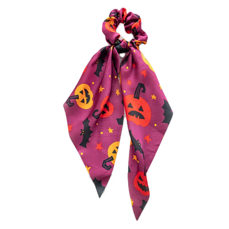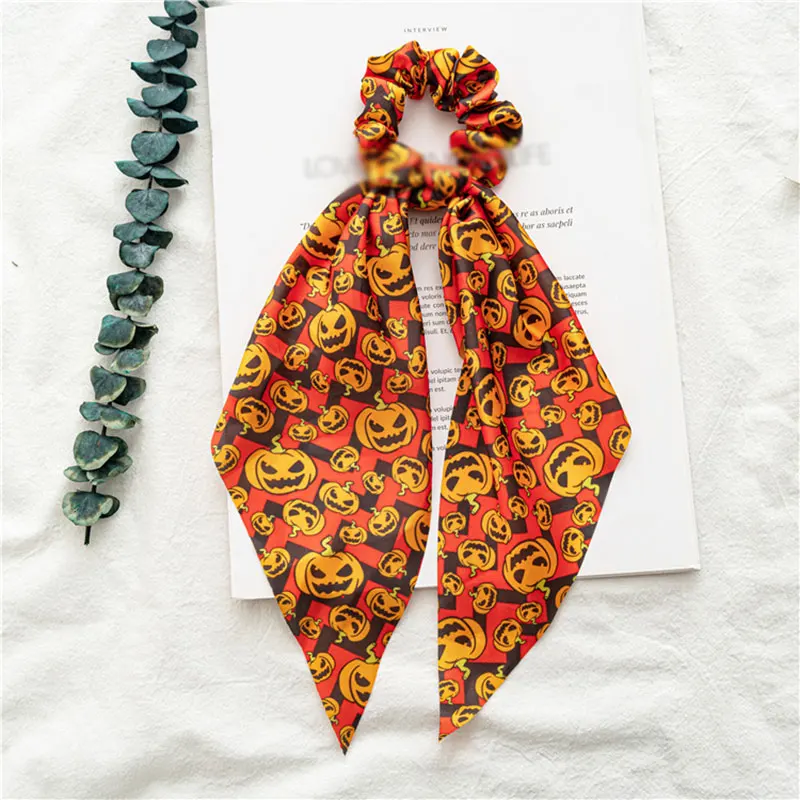 Резинка для волос с принтом женская, эластичная повязка на голову с шарфом и бантом, аксессуар для волос на Хэллоуин
