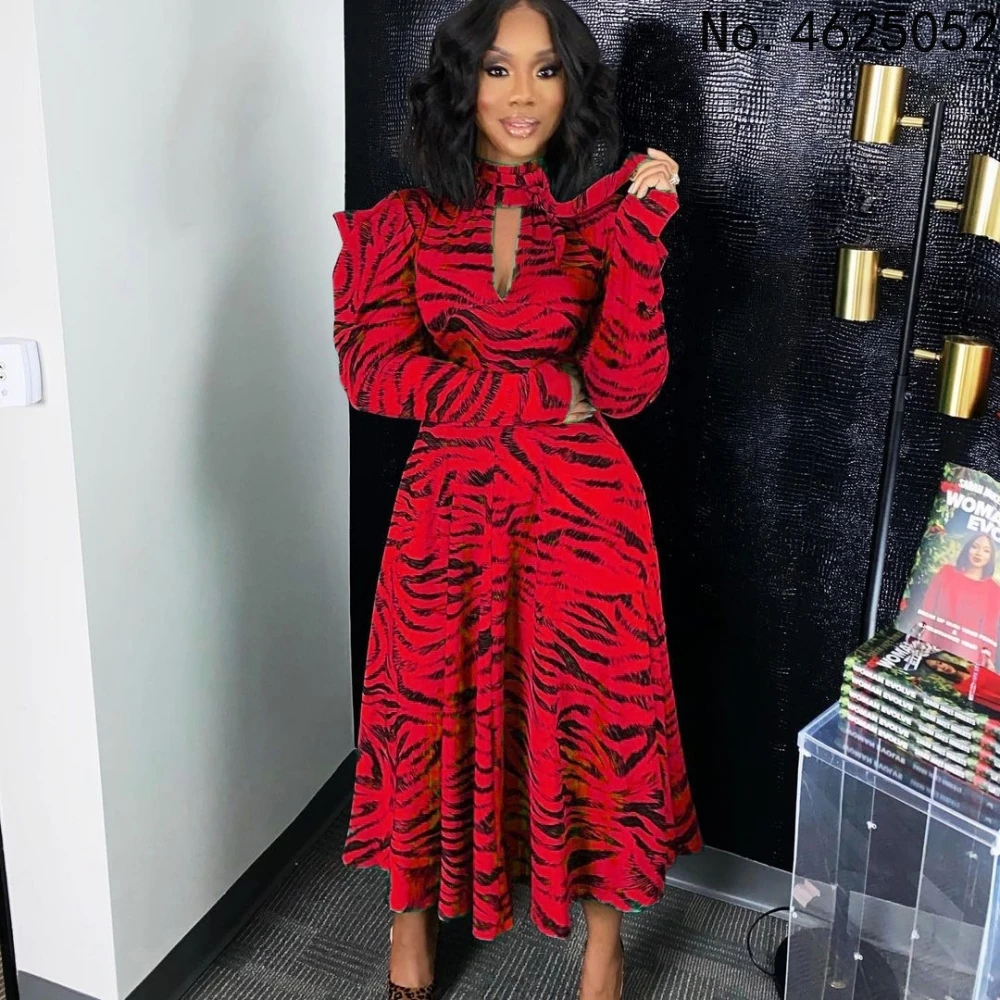Винтажные африканские платья с принтом зебры для женщин 2021 летнее платье миди вечерние платья с длинным рукавом ТРАПЕЦИЕВИДНОЕ рождественское платье Femme Vestidos