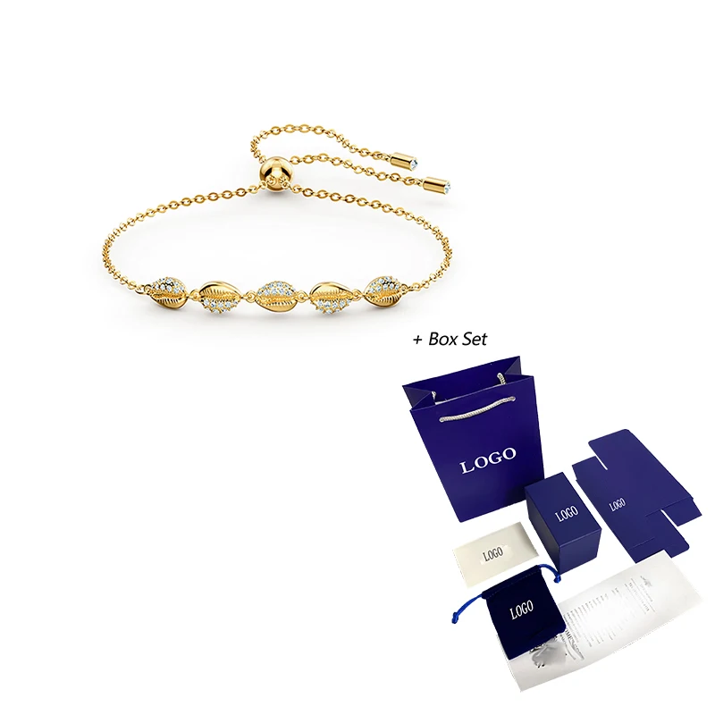 Новый браслет SWA в форме ракушки с золотым цирконием, Женский Модный высококачественный ювелирный подарок