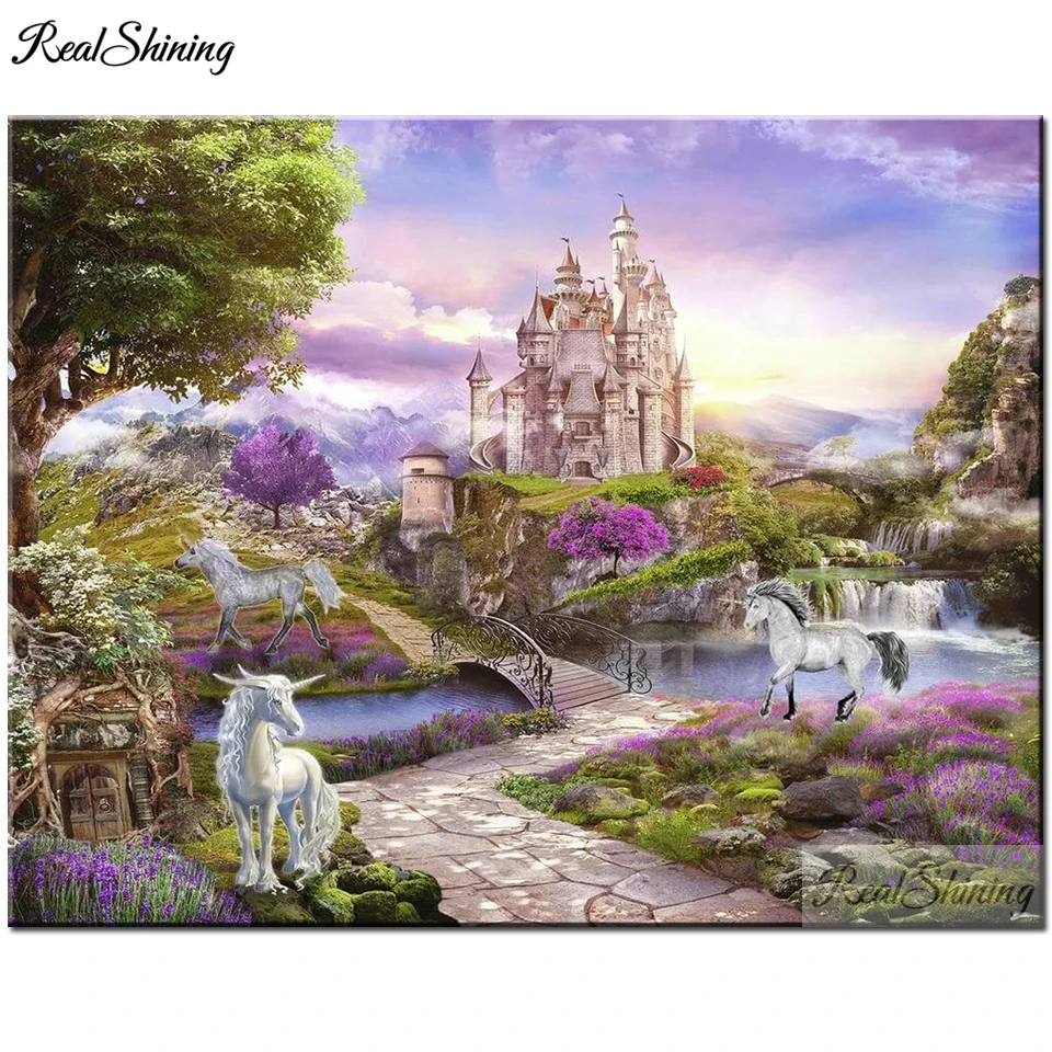 Алмазная живопись с лошадьми, дворец, сделай сам, вышивка крестиком из сказочной страны, замок, вышивка крестиком, стразы, искусство T369