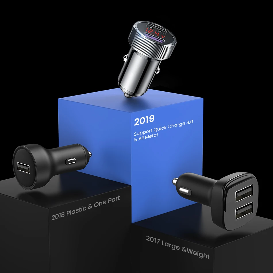 Металлическое автомобильное зарядное устройство Quick Charge 3,0 USB QC 3,0, зарядное устройство для телефона iPhone, Samsung, Huawei, Xiaomi, быстрая зарядка мобильного телефона со светодиодным дисплеем