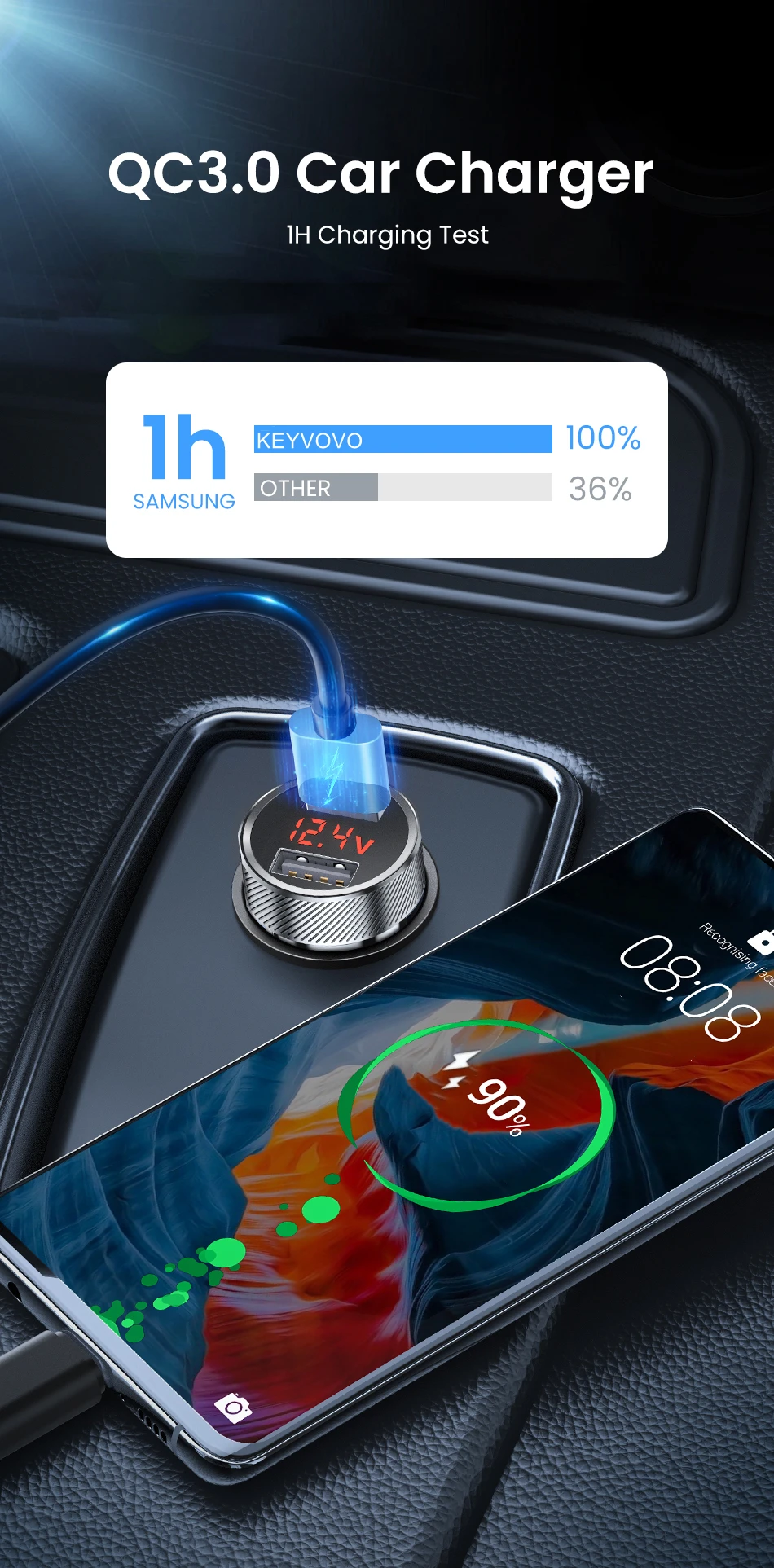 feature 7QC 3.0 MTK Quick Charge With Voltage/Current Digital LED Display