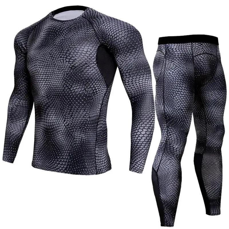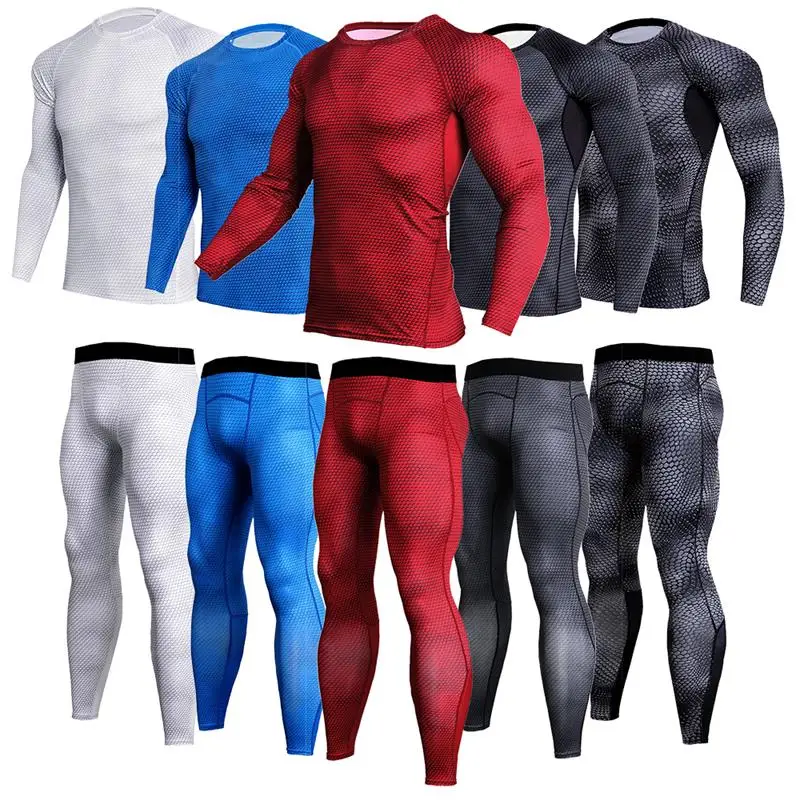 Мужской компрессионный спортивный костюм, быстросохнущая Однотонная рубашка с длинным рукавом, спортивные штаны, Спортивная эластичная одежда для тренировок, комплект из двух предметов