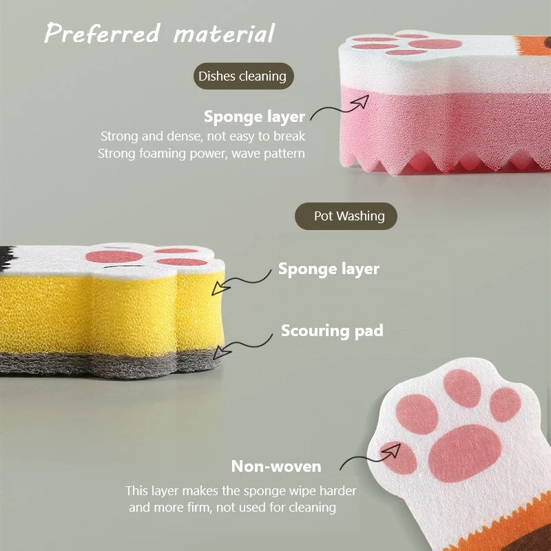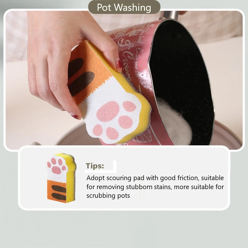 Кухонный прибор для мытья посуды, утолщенная губка с кошачьими когт...