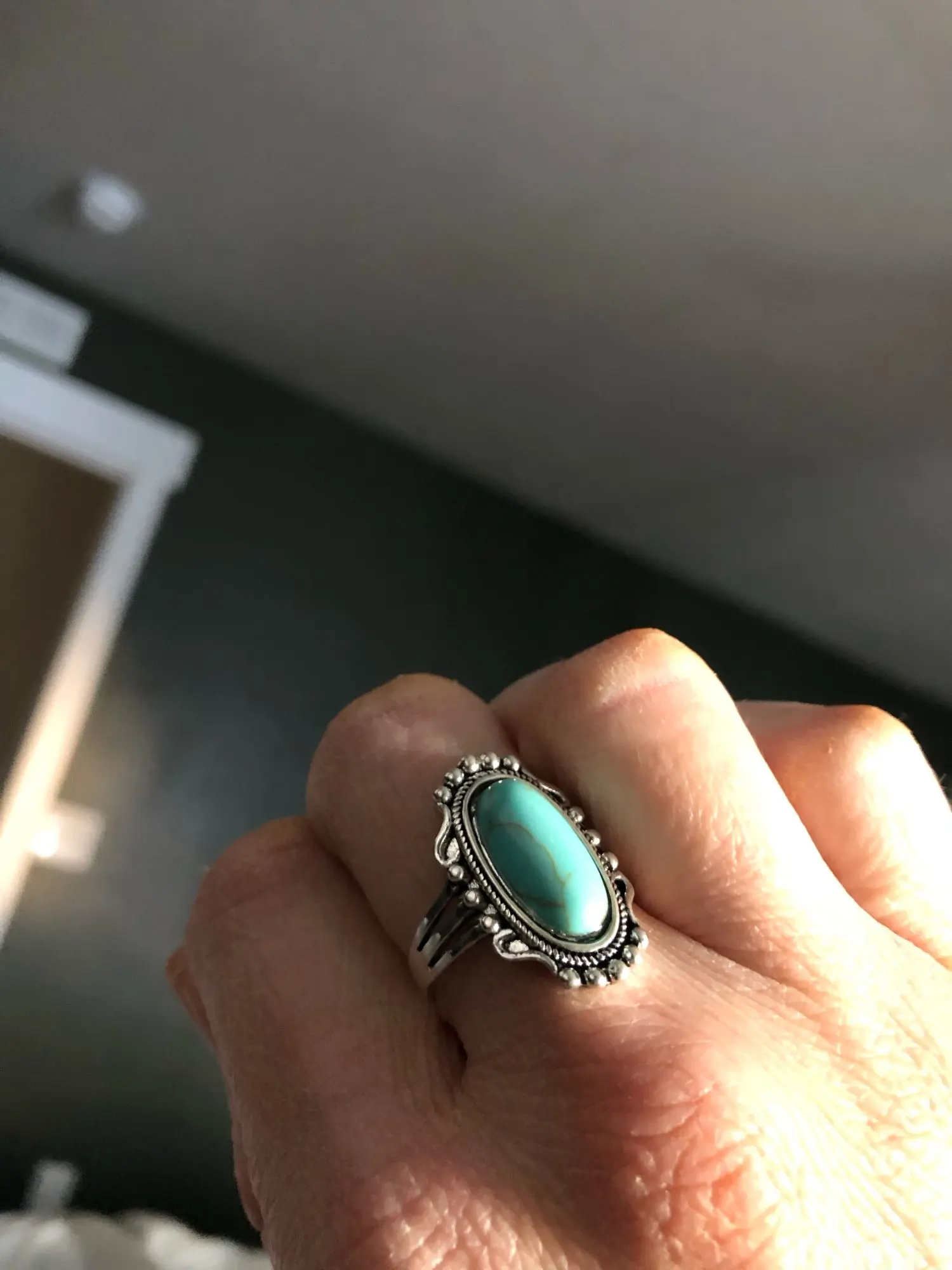 Кольцо женское бирюзовое в этническом стиле, геометрической формы, в стиле бохо