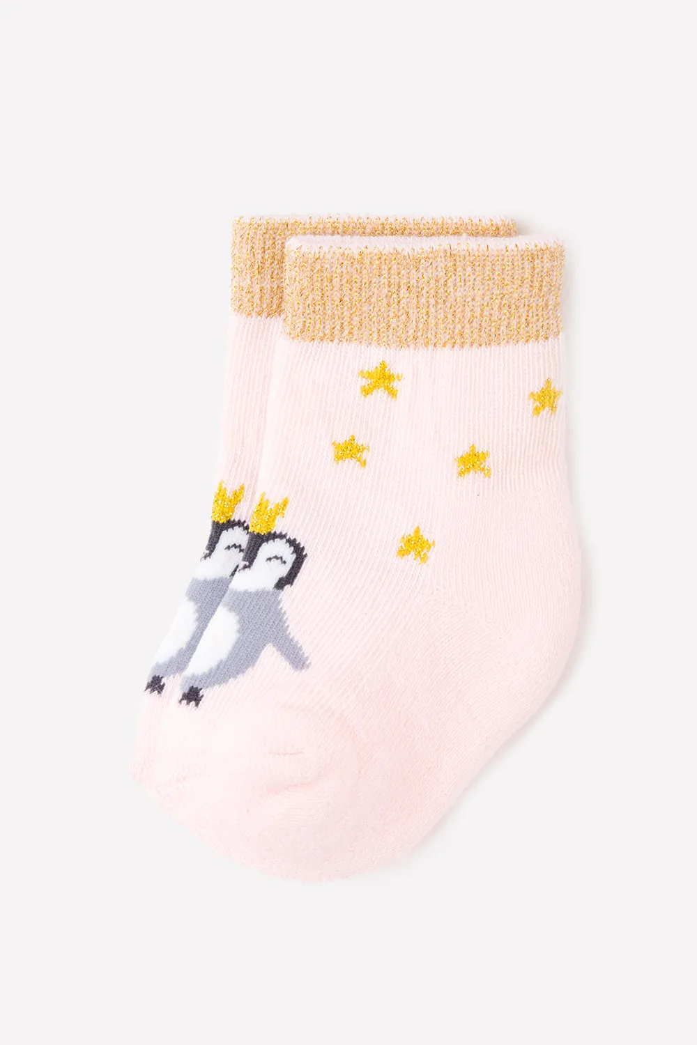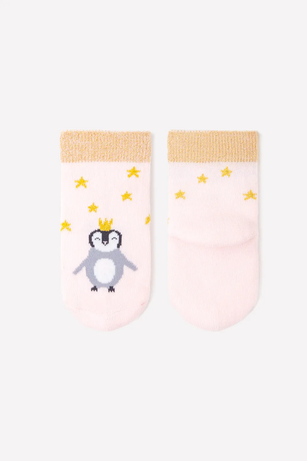 Описание: Махровые носки с изображением пингвинёнка и звёздочек. Благодаря нейлону и эластану лучше облегают детскую ножку и дольше сохраняют опрятный внешний вид.
